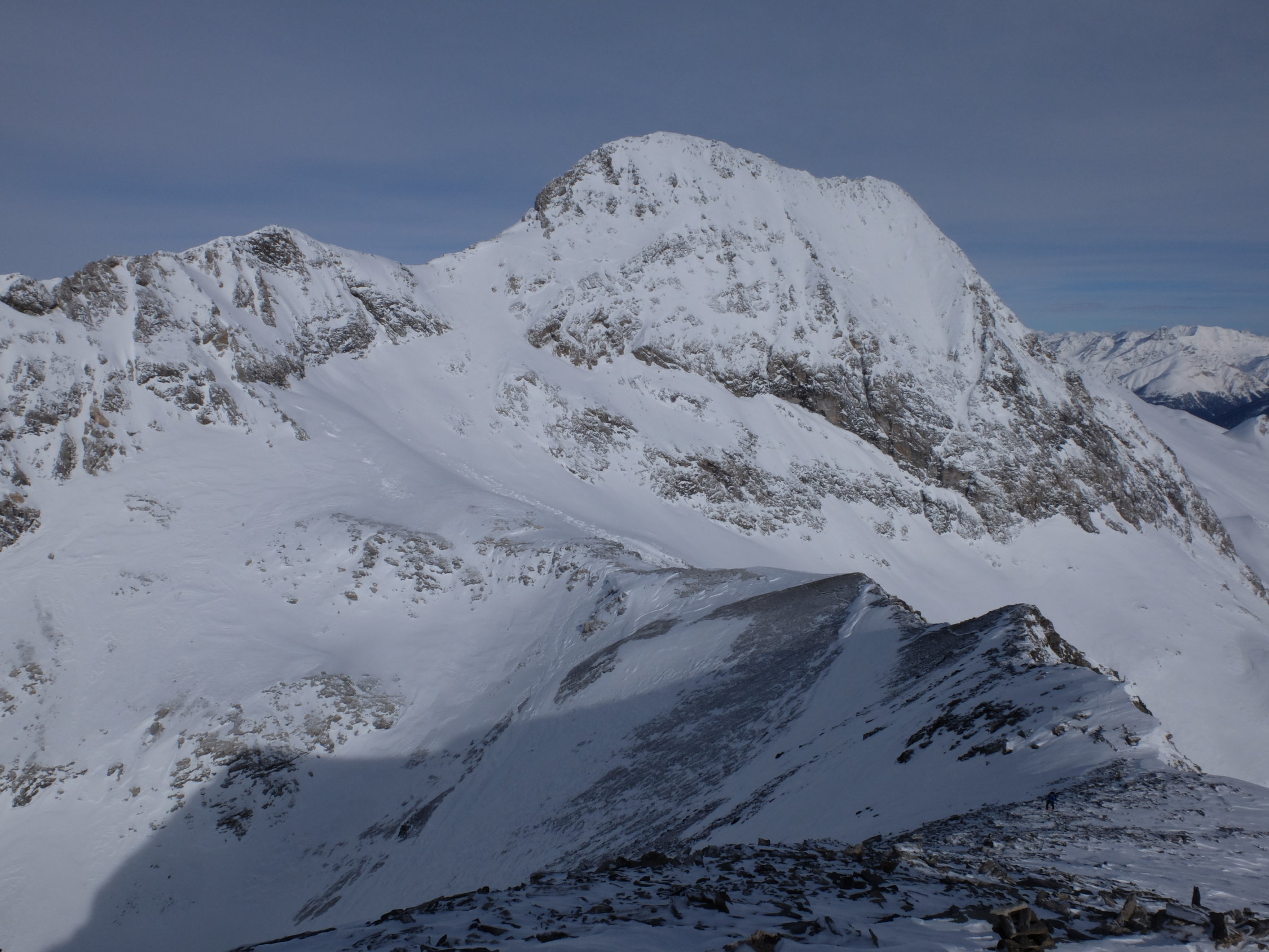 Von Preda Pulver bis 2100m. In der Querung zur Alp Zavretta meist nur Altschnee, mit kleineren Triebschneeflecken. Weiter dem Sommerweg folgend, in der Mulde etwa 40-50cm Pulverschnee. Bei P. 2608 schöne Stelle für Schneehöhle. Ab etwa 2700m kein Pulver mehr. Die letzten etwa 100m zur Fuorcla Zavretta gab es sehr harten Schnee - mit Harscheisen ginge es zum Sattel, wir sind vom etwa 2850m zu Fuss gegangen. Der Gipfelgrat ist fast schneefrei, zu Fuss unproblematisch. Abfahrt über S-chagnen, da auch bester Pulver. Die Querung dahin auf dem steilen sonnenbestrahlten Hang zur Zeit risikoarm, wegen nicht geschlossener Schneedecke in der Querung.