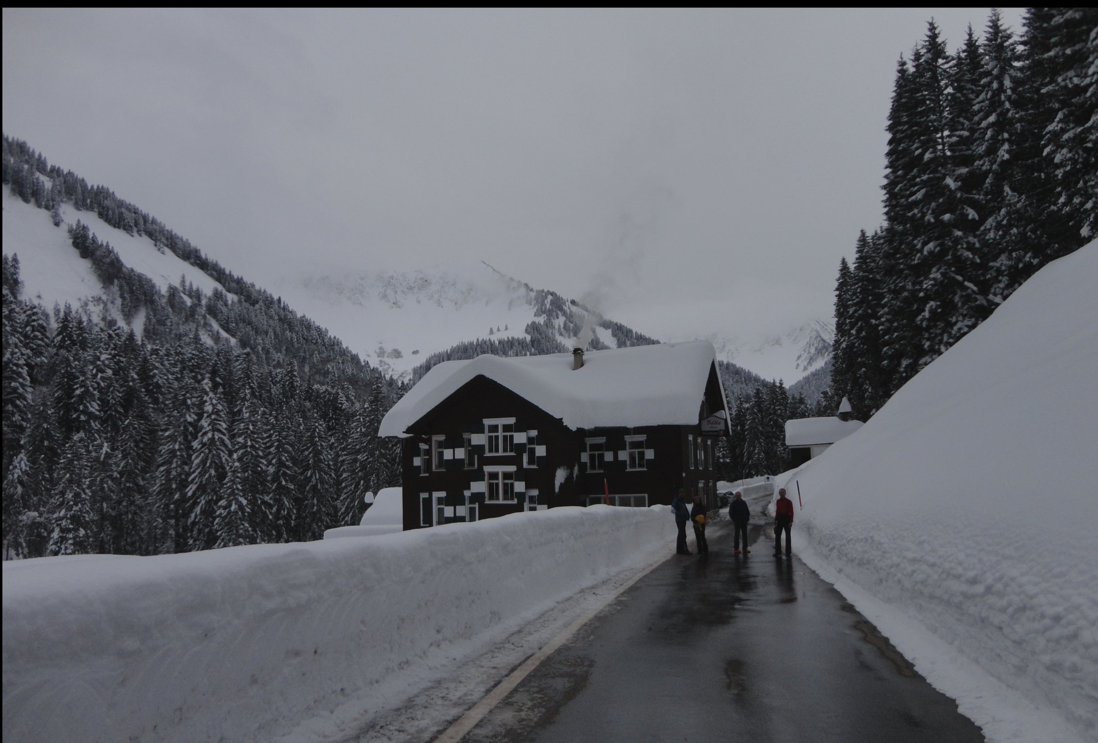 Großer gebührenfreier Parkplatz am Ende der geräumten Strasse beim Gasthaus Bädle.