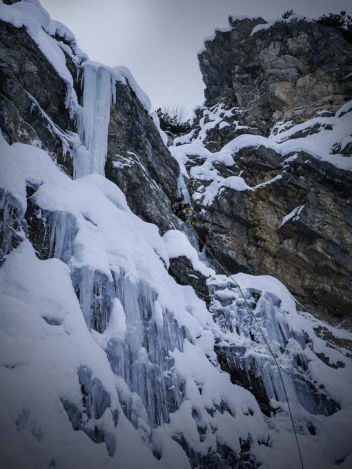 Haben geklettert: unten den Einstieg und rechts unten die 4 ist eine der besten seillängen die ich je geklettert hab, mal schauen ob ich nen bild reinstellen kann, unten dünneres aber ausreichendes eis für schrauben und oben geniale eissäule in Kamine--genial:)) komplett gut absicherbar und herrlich, dafür hat sich gelohnt. Oben der rechte 5- /4+ Fall geht ganz gut allerdings läuft vor der letzten Säule butal wasser und hab umgedreht.