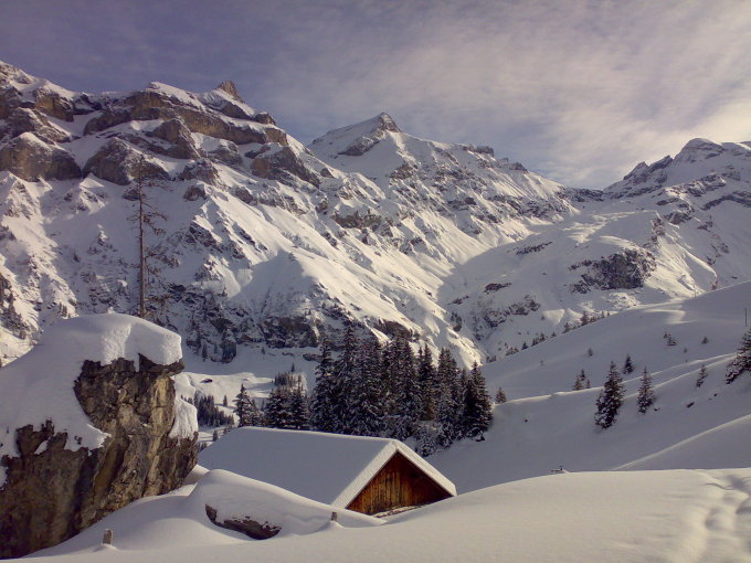 Ganze Route durchgehend eingeschneit. Ab Griesalp war Spurarbeit angesagt. Bis Dünde- Mittelbärg konnte die alte Spur wieder aufgemacht werden. Von da zunehmend Triebschnee. Die alte Spur war völlig zugeblasen. Kurz vor Obere Dünde rechts weg und durch die markante Rinne auf die Ebene bei 2080. Von da nach rechts zum Normalaufstieg gequert. Auf der ganzen Strecke 40-50 cm beim Spuren eingesunken. Jede Menge Triebschnee bis zum Gipfel. Abfahrt war der Hammer. Super Pulver bis Griesalp. Strasse nach Tschingel sehr gut zu fahren. Keine Gräben vom Ratrac des Hotels vorhanden.
