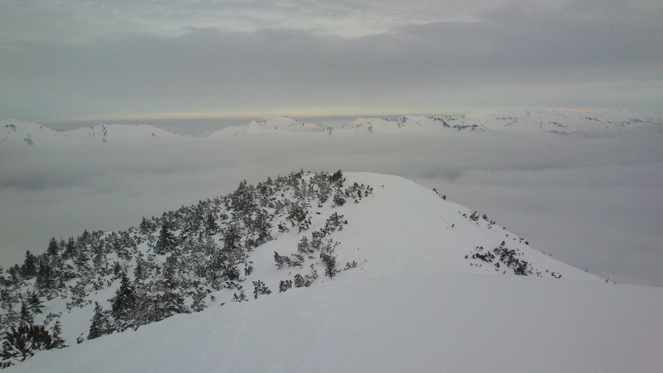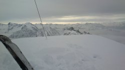 Nebel bis auf ca.1600-1700m, oberhalb dünne Schleierwolken und ein eisiger Wind