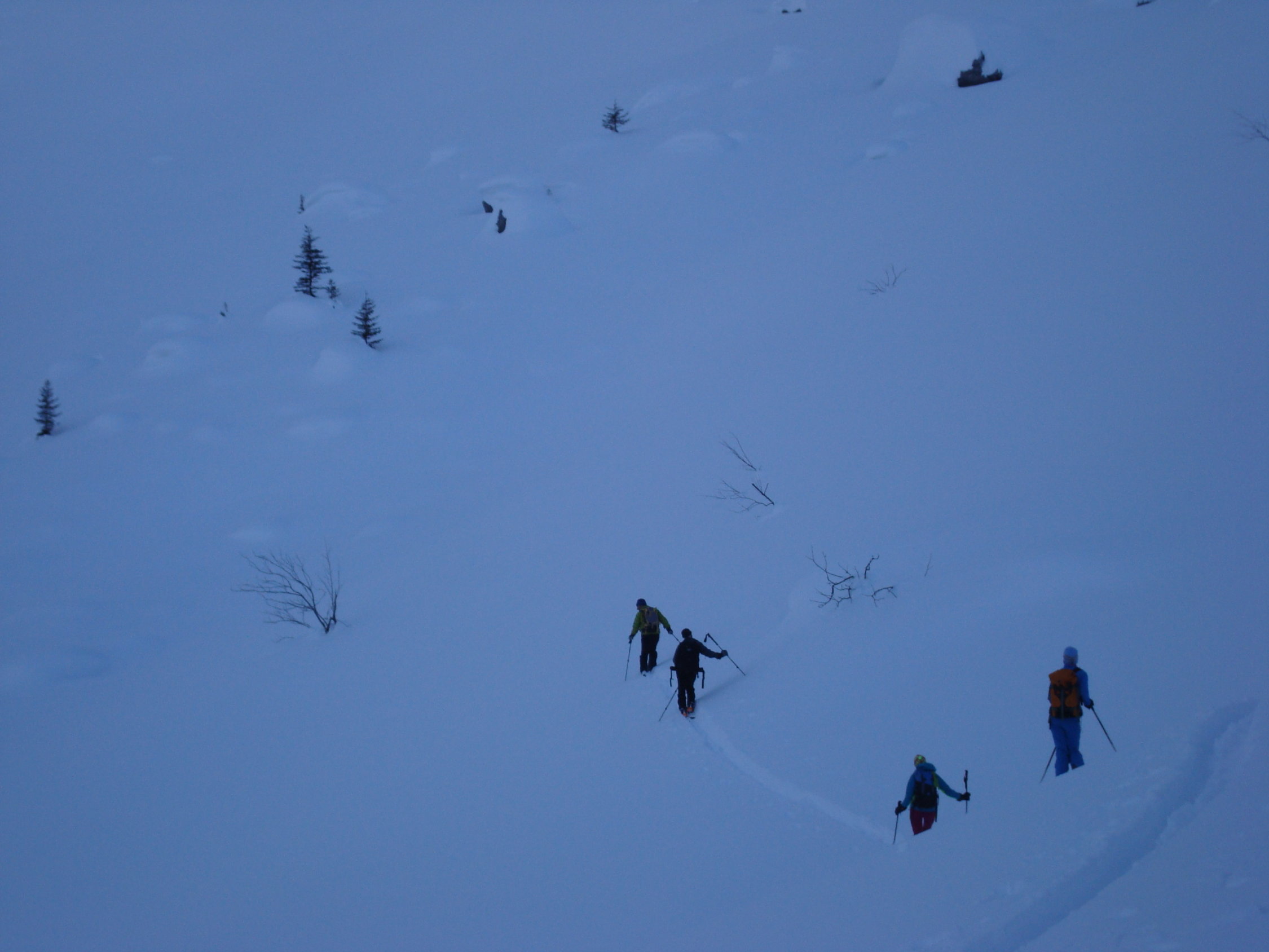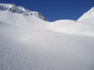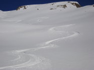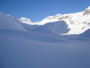 Die oberen steileren Hänge (35°) bekommen mittlerweile allerdings schon zeitig Sonne ab.