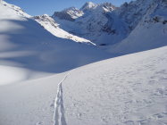Sehr gute Spur bis Flösch (Eingang Griesstal). Ab da war Spuren angesagt. Und das Tal zieht sich! Kurz vor dem "Stich" kam ein Urner hinterher und half mit beim Spuren. Danke nochmal an Röbi aus Altdorf.