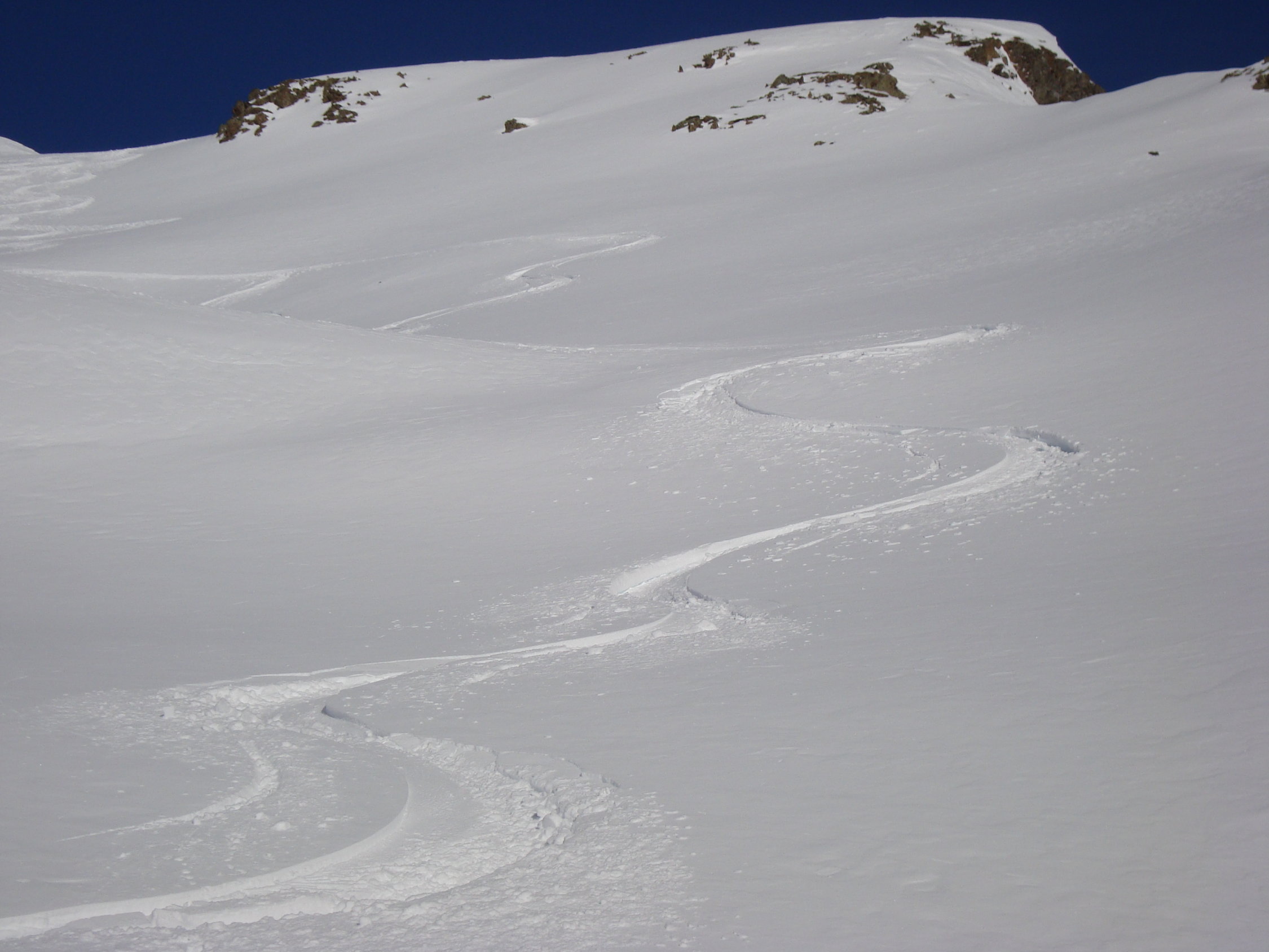 In den Schattenlagen leichter und in den Sonnenlagen, welche jetzt auch wieder im sonst so schattigen Griesstal zunehmen, gut gesetzter Pulver.