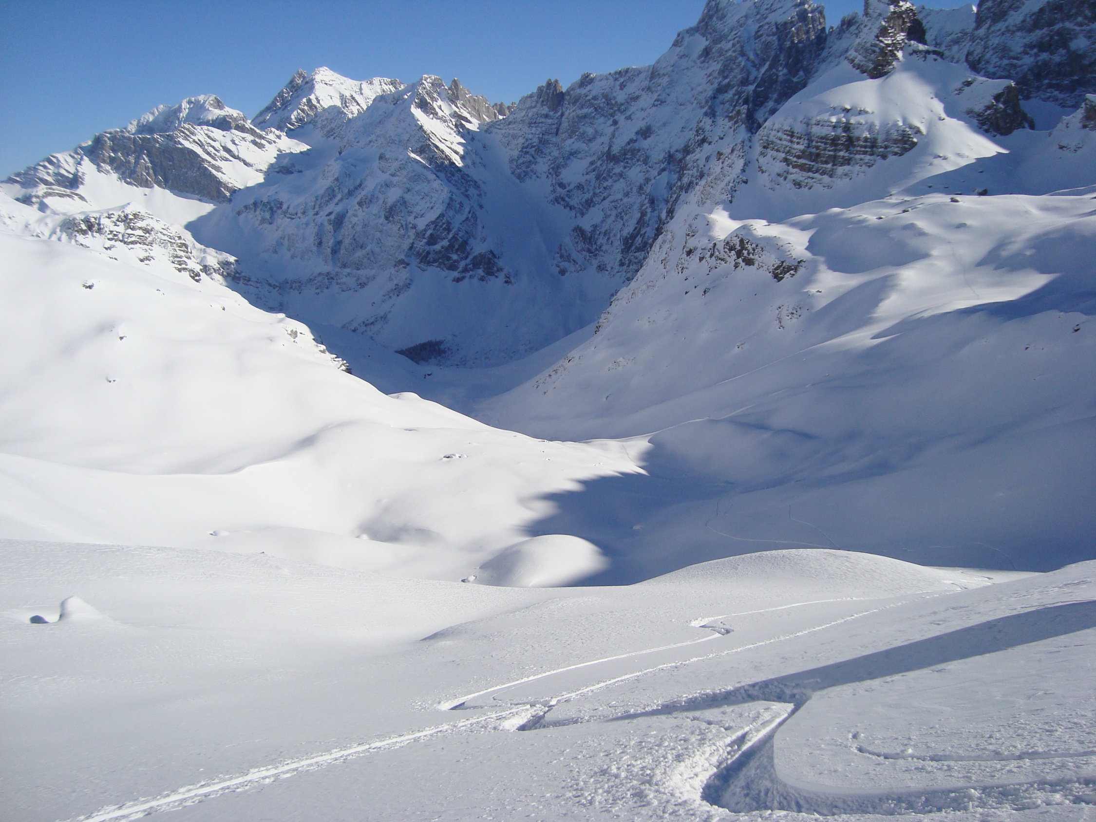 Sonne pur ab ca. 1550M.ü.M. Dazu unzerfahrener Powder von unten bis oben!