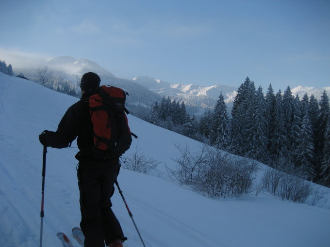 Beste Verhältnisse, tief eingeschneite Gunzesrieder Berge, schöner Pulverschnee!
