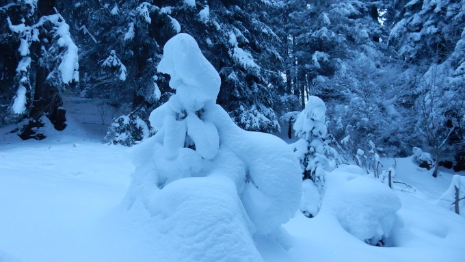 Es hat genügend Schnee im Wald für den Aufstieg und die Abfahrt auf Oey nimmt man über die offenen Hänge und da liegt mit 20-50cm Pulver doch bis ins tal genügend Schnee