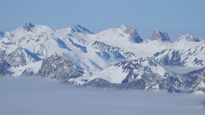 Der Niesen ist im Winter immer etwas besonderes so ohne Bahn Touristen mit Grandioser Aussicht.