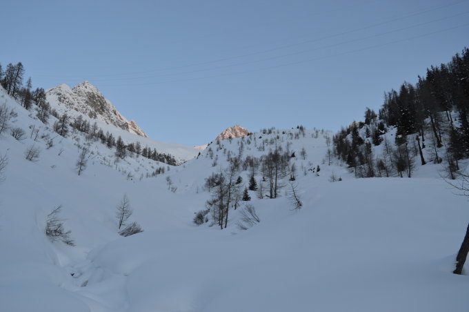 Im Aufstieg beste Verhältnisse, heute kaum Bruchharsch. Deutliche Zeichen von kleineren Triebschneeansammlungen.