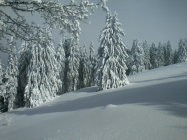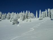 Top, überall genug und toller Pulverschnee, nur in Kammnähe stellenweise etwas gebunden und windgepresst.