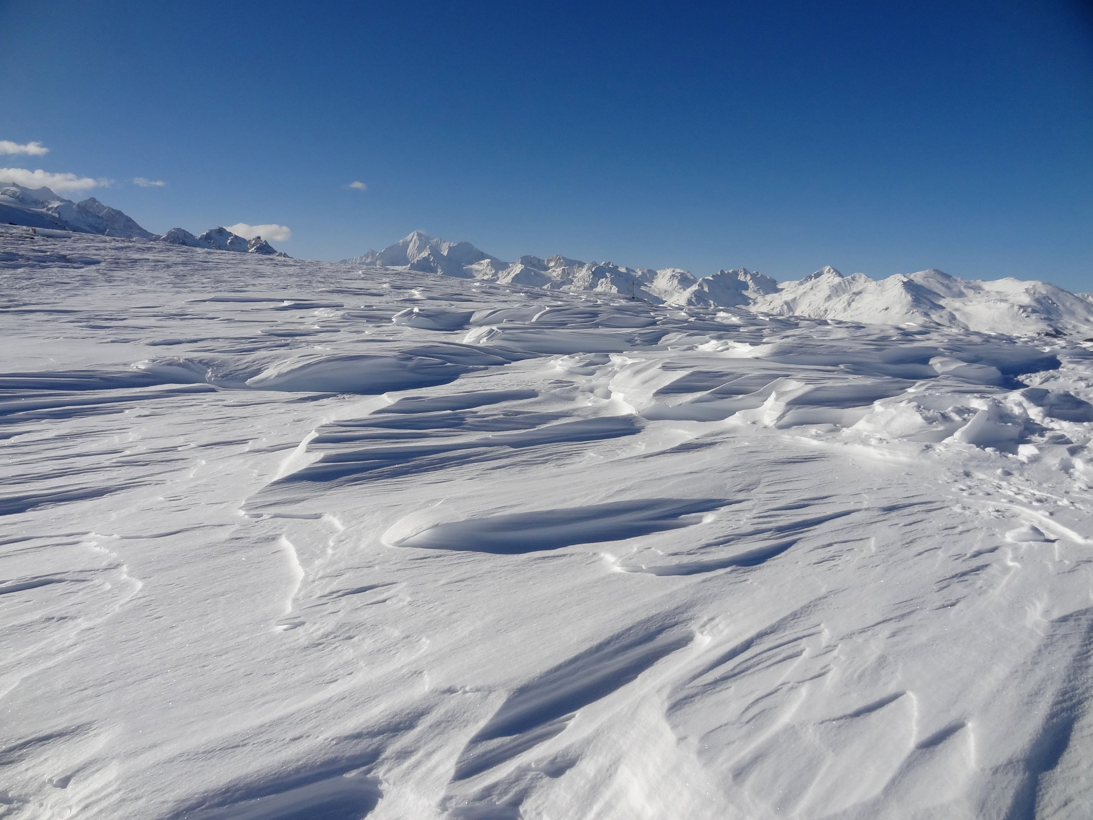 Die Route ist bis zum Gibidum maschinell präpariert. Nach dem Wind der letzten Tagen, nach dem Wald bis zum Pass starke Verwehungen. Wir mussten neu spuren. Vom Pass zum Rothorn starke Verwehungen, abwechselnd mit blankgefegten Stellen.