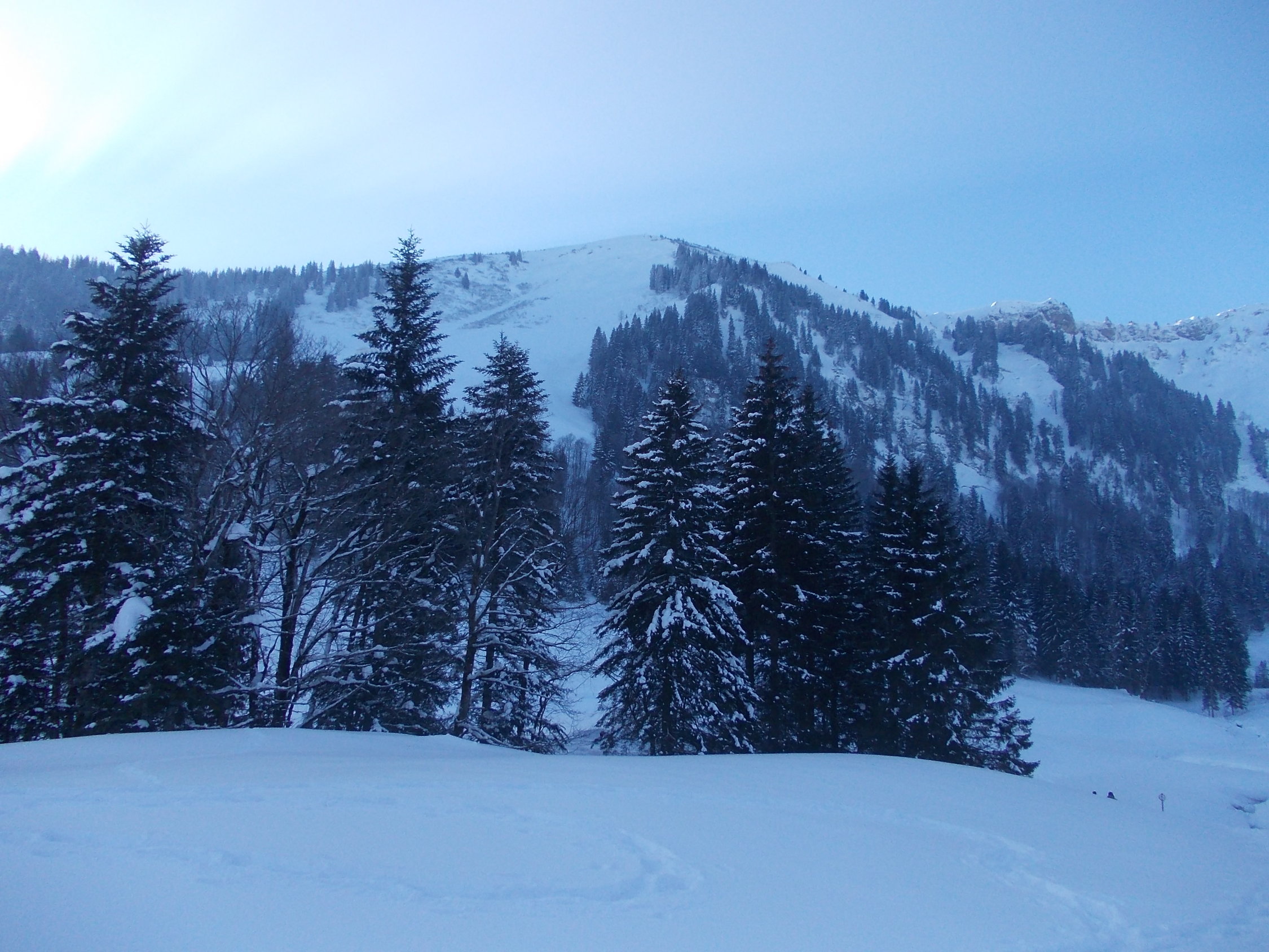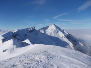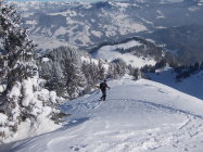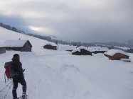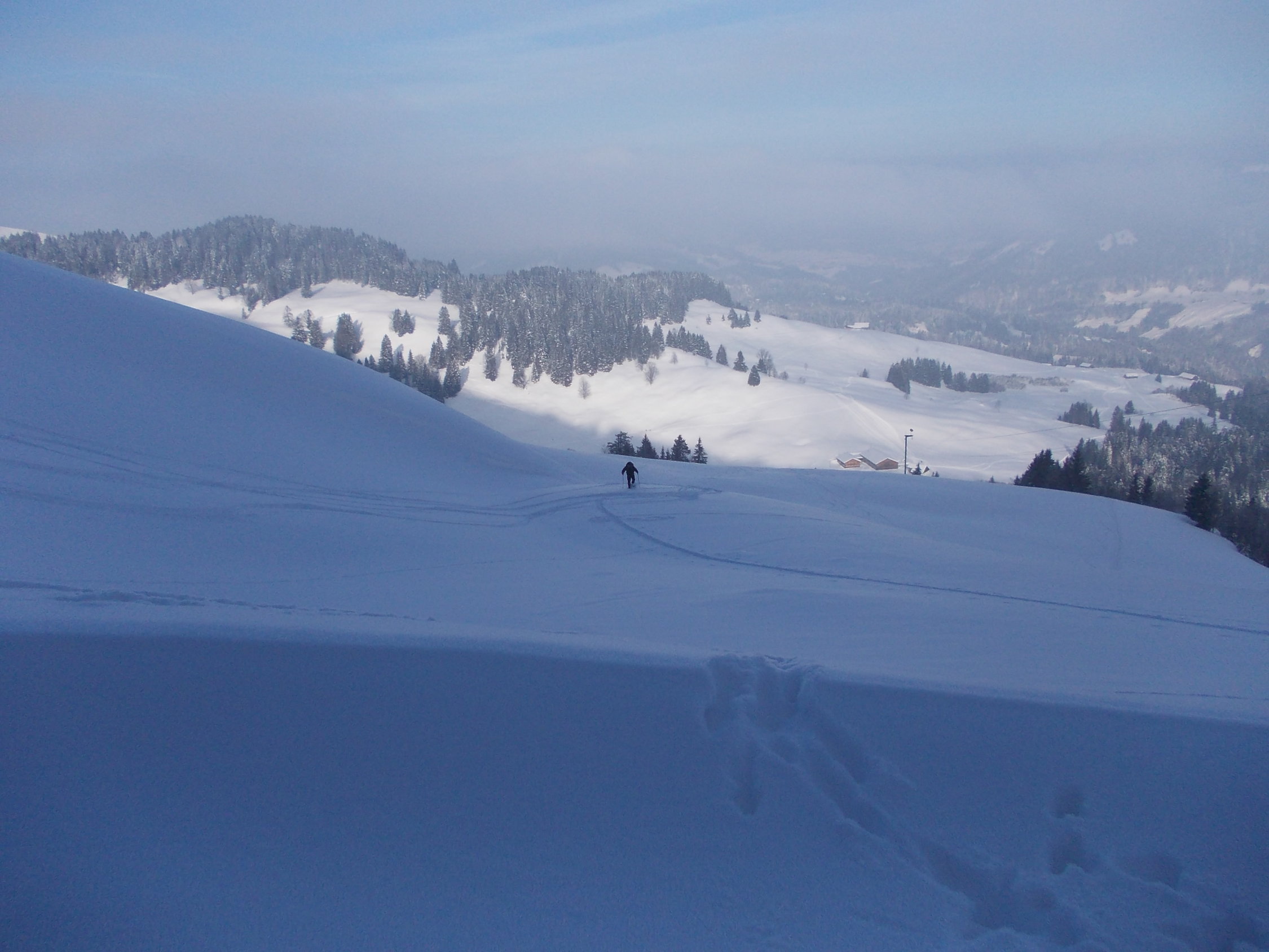 Viel Schnee in Form von bestem Pulver auf der Nordseite, deutlich weniger Schnee auf der Südseite (überwiegend abgeblasen, Gras tritt öfter zum Vorschein). Mit Sonneneinwirkung war die Schneedecke dort zudem schon recht durchfeuchtet. unangenehmer Wind in kammlagen und auf den Gipfeln.