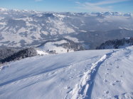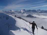 Während der Aufstieg zum Bullerschkopf auch bei weniger günstigen Verhältnissen angegangen werden kann, erfordert der Rest der Tour sichere Verhältnisse - Neubeurteilung nach Neuschneefällen!