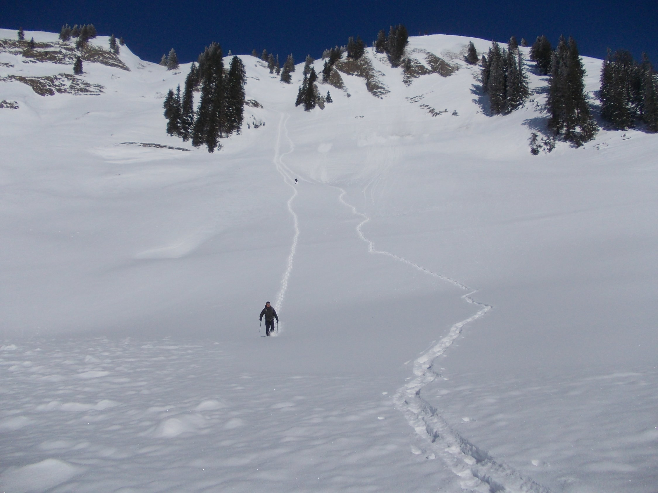 Spuren eines größeren Lawinenabgangs auf der Südseite nahe der Lingenersalpe.