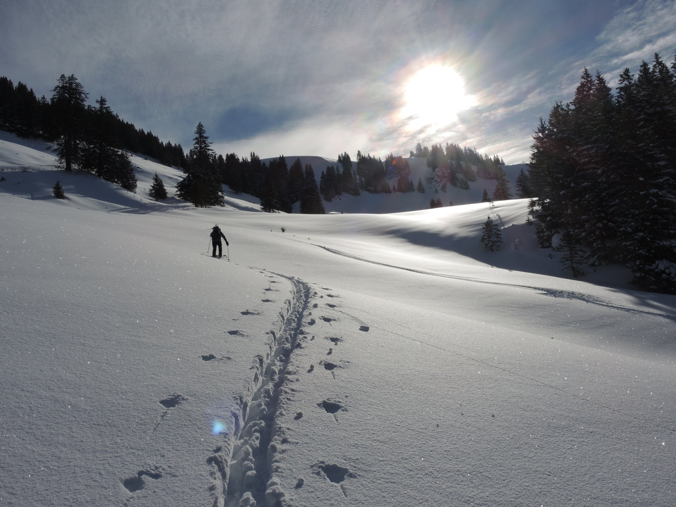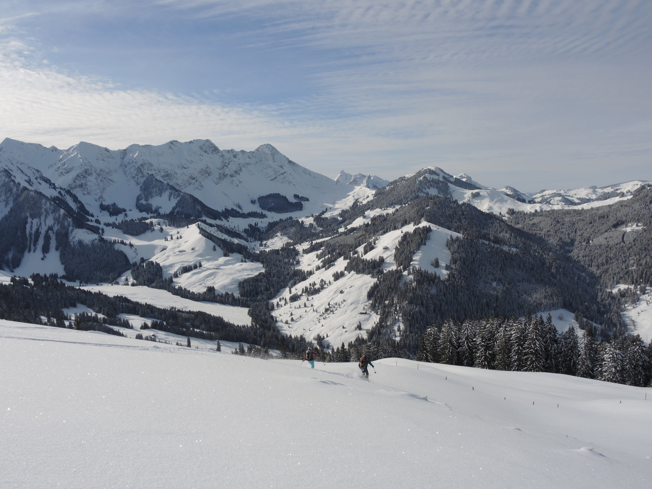 vom Hengst auf den Stäckhüttehoger, Abfahrt Nord bis zum Wald, Aufstieg Grätli 1655m, Abfahrt über Schwendli, Muscherli zur Brücke Bödeli, Aufstieg Ättenberg und Abfahrt nach Zollhaus