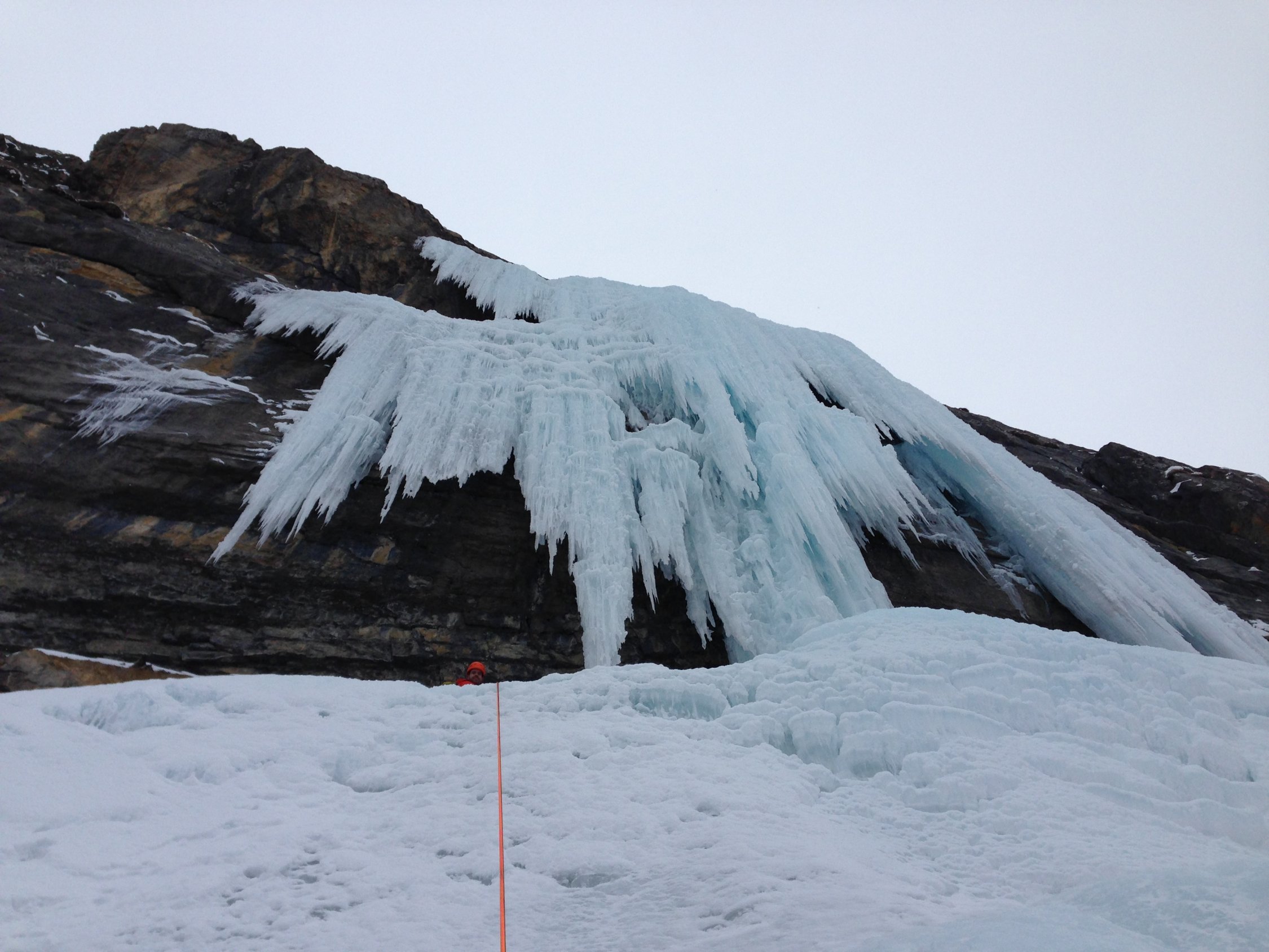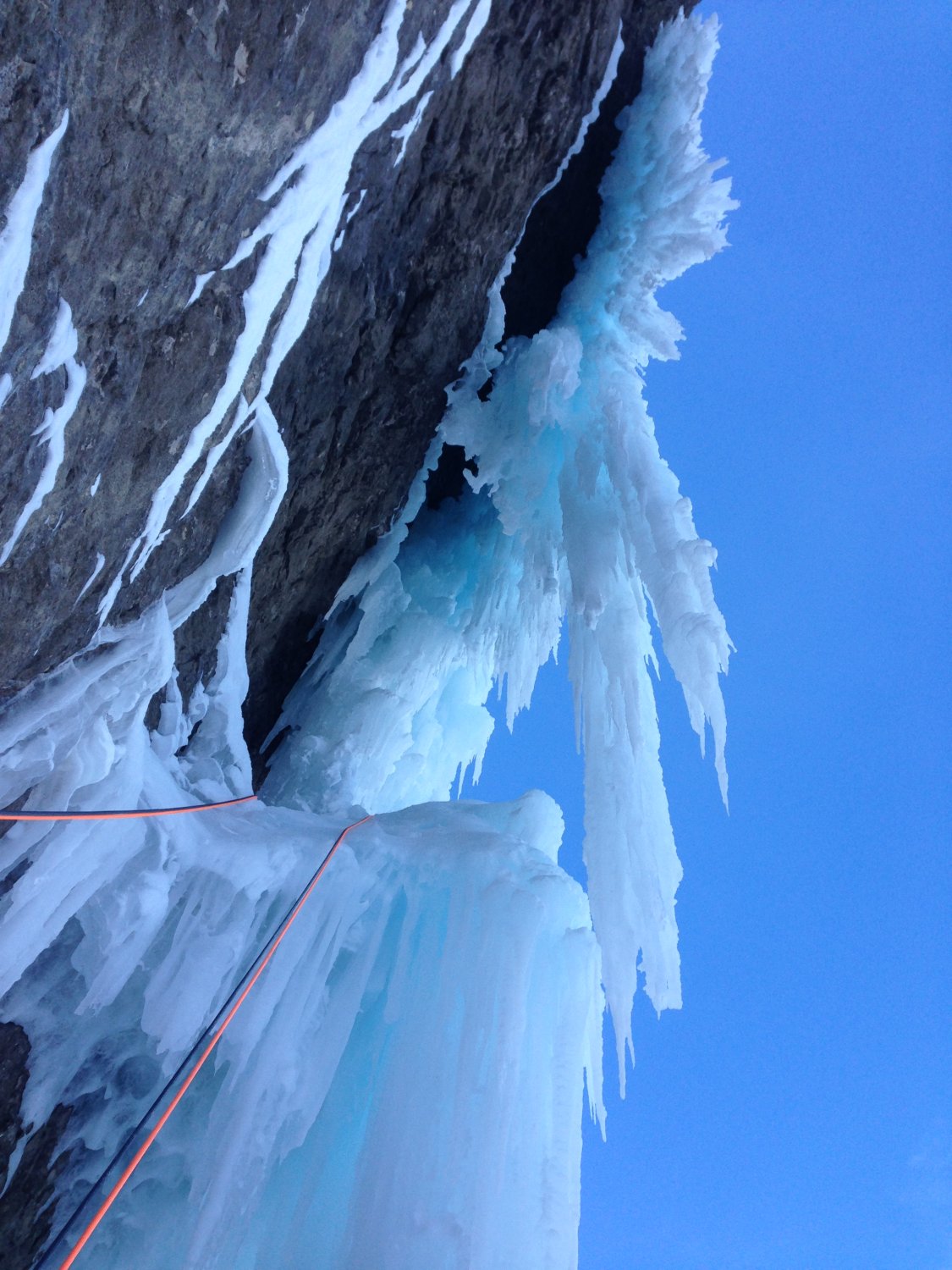1. SL dünnes Eis und Ausgetrocknet. 2. - 4. SL sehr gut, trocken mit tollen Hooks. 5. SL Schlüssellänge, absolut trocken und daher ausgedorrt, erste 6m Mixed nachher Spiralenförmig bis über den Überhang. 6. SL zuoberst schöner Blumenkohl! 7 + 8. SL schön und endlich feucht.