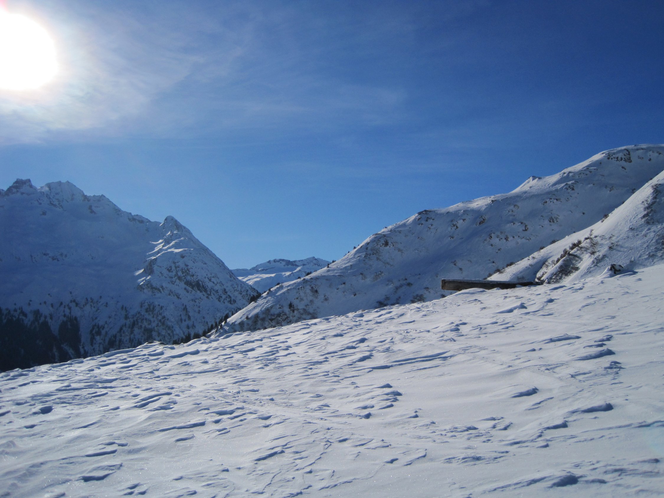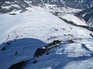 auf dem rücken alles abgeblasen, windgepresste neuschneeschicht auf abgeblasener vereisten altschneelage. schlüsselstellungen etwas steinig aber ok. evt harscheisen mit etwas luxuriöser. auch beim aufstieg haben wir sie uns mal gegönnt so auf 2300. rüttelabfahrt aber ganz ordeli. gut griffig etwa ab 1900 etwas pulver.