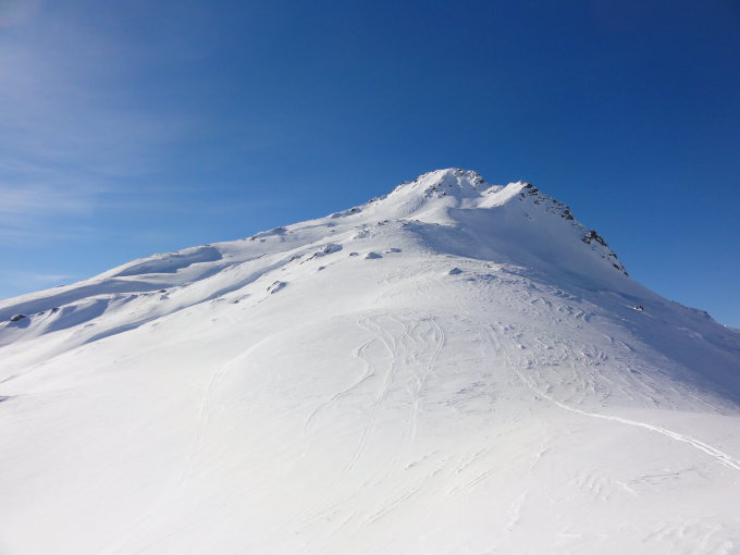 An den Südhängen wird der Schnee im Laufe des Tages recht nass. Nassschneerutsche sind dort in den nächsten Tagen zu erwarten. Dies gilt auch für den Südhang vom Skidepot zum Pkt. 2628.