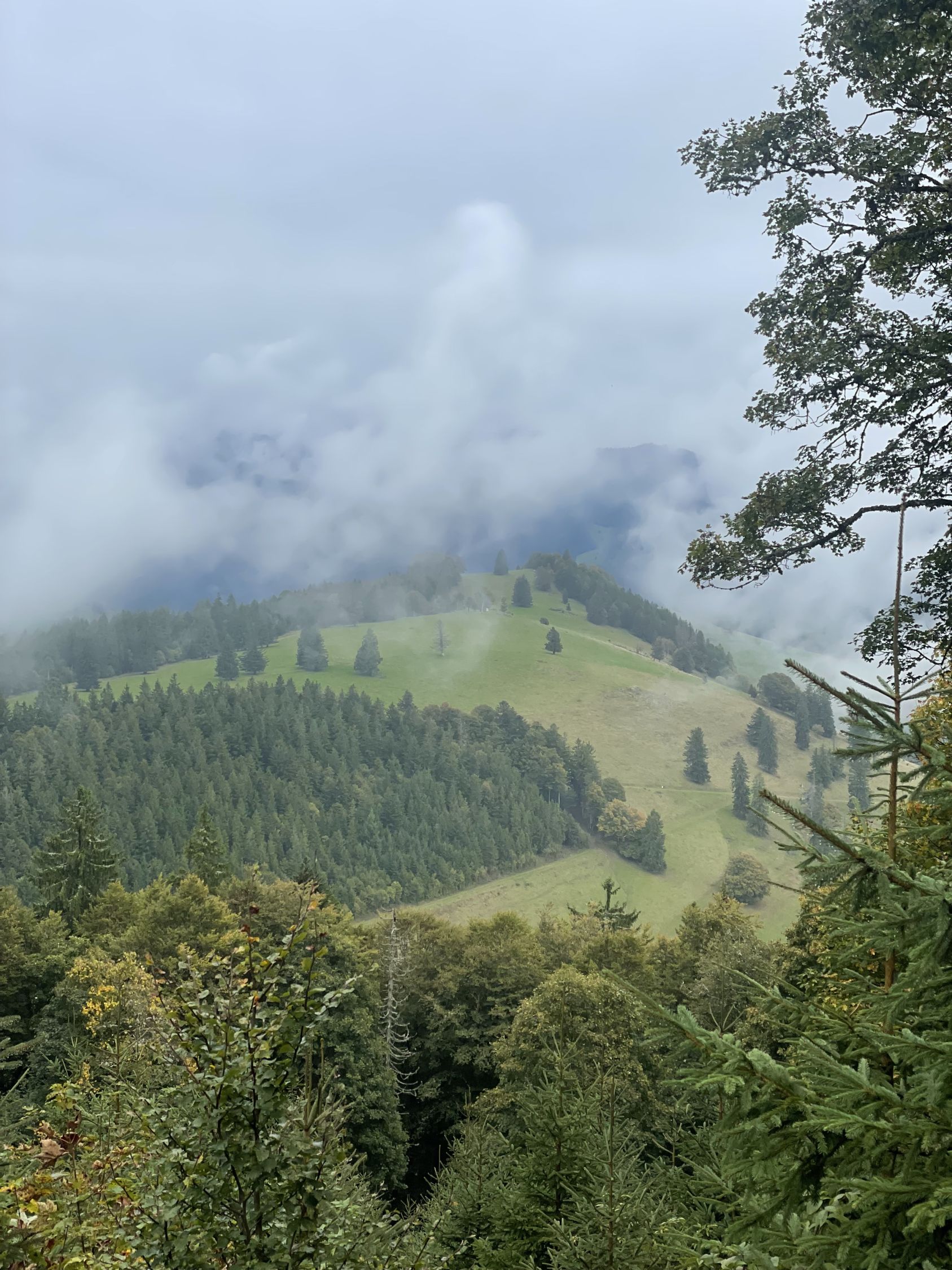 Nachmittags-Runde im Nieselregen. Bemerkenswert ist die Baustelle oberhalb der Stuhlsebene, die Wasserfassung wird erneuert. Daher ist die sogenannt flache Aufstiegsroute momentan gesperrt und man wird auf die steile Route verwiesen (die ja aber nicht wirklich steil ist). Oben trotz schlechtem Wetter relativ viele Leute, vielleicht sind in BaWü auch Ferien.