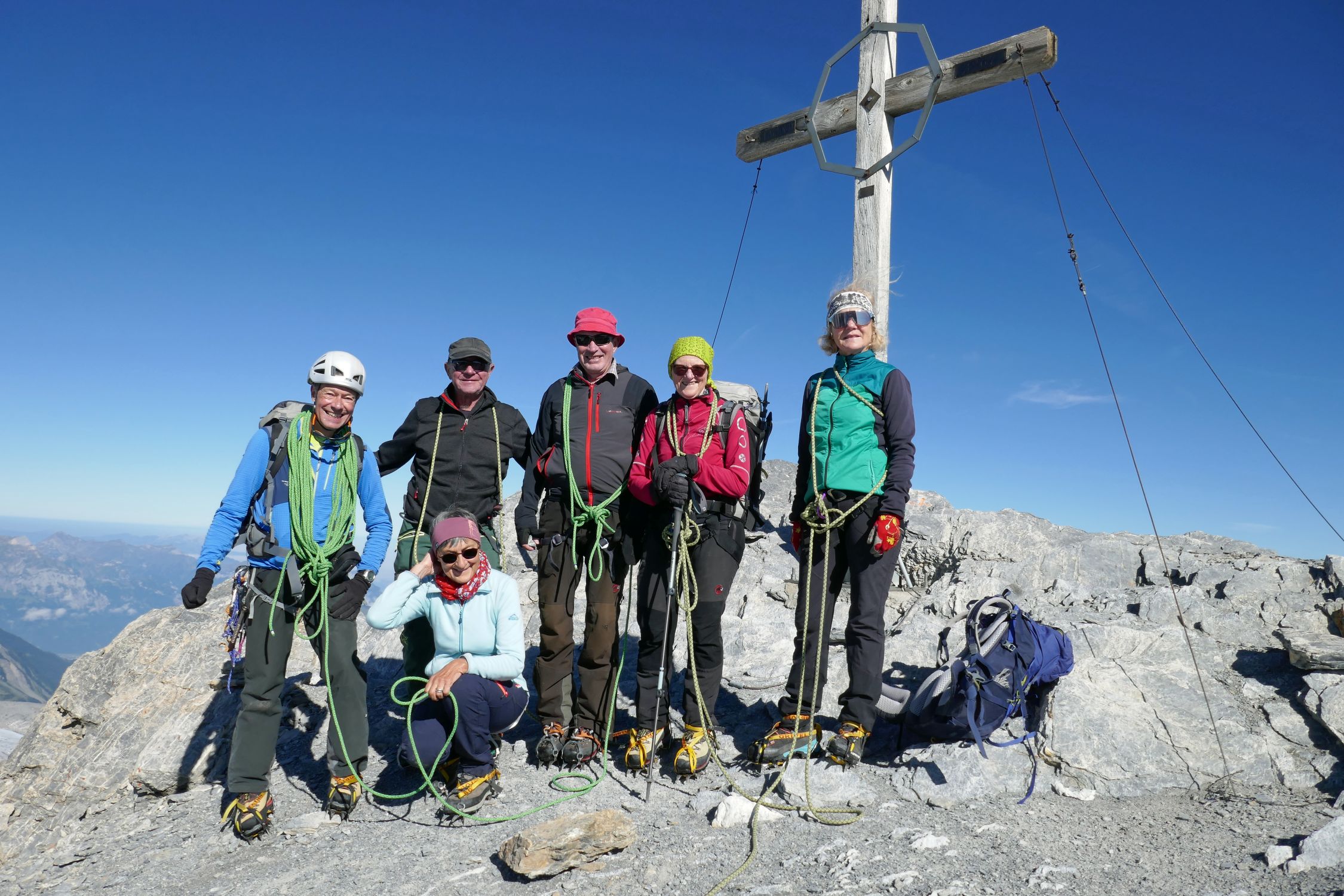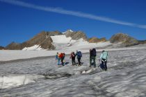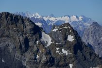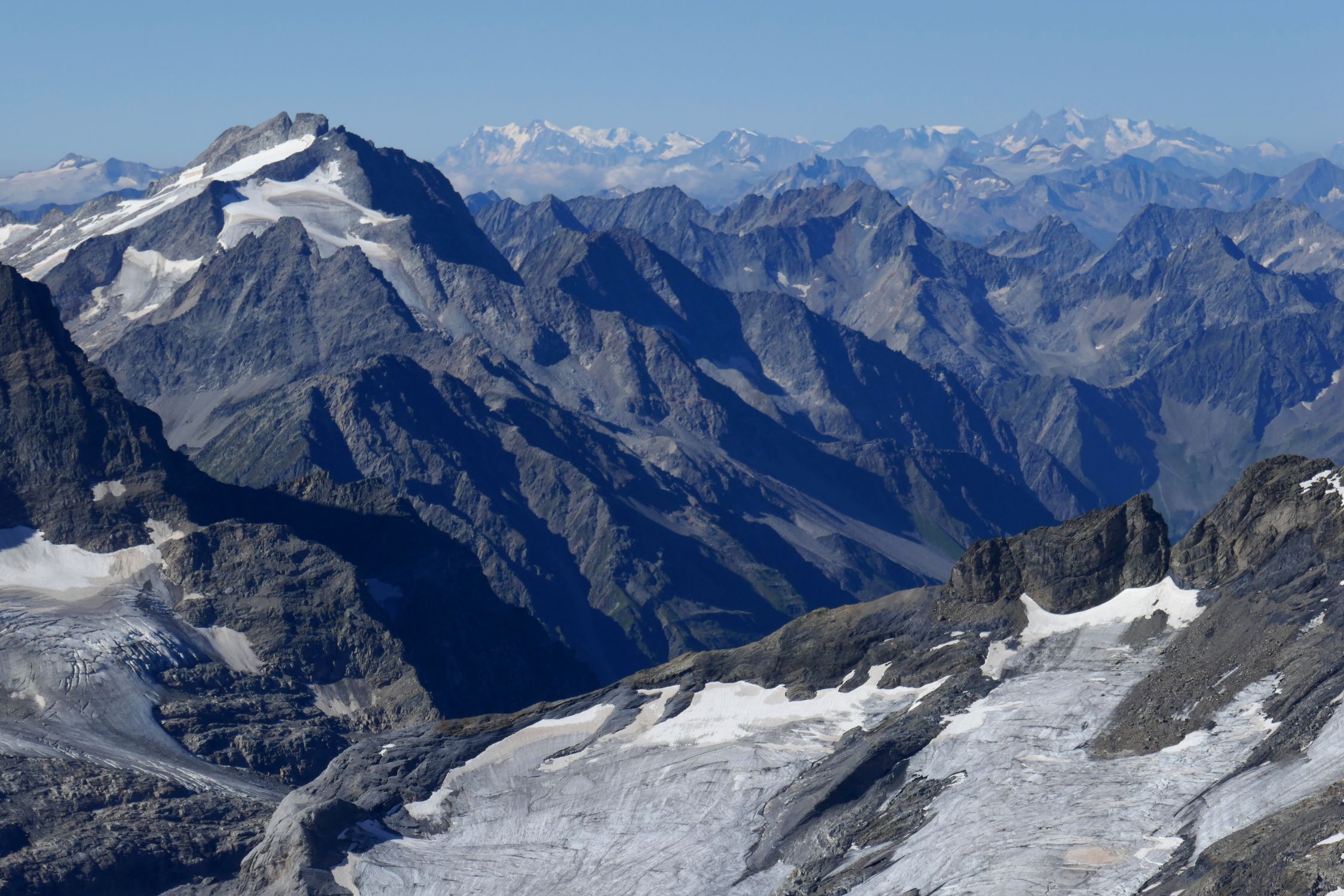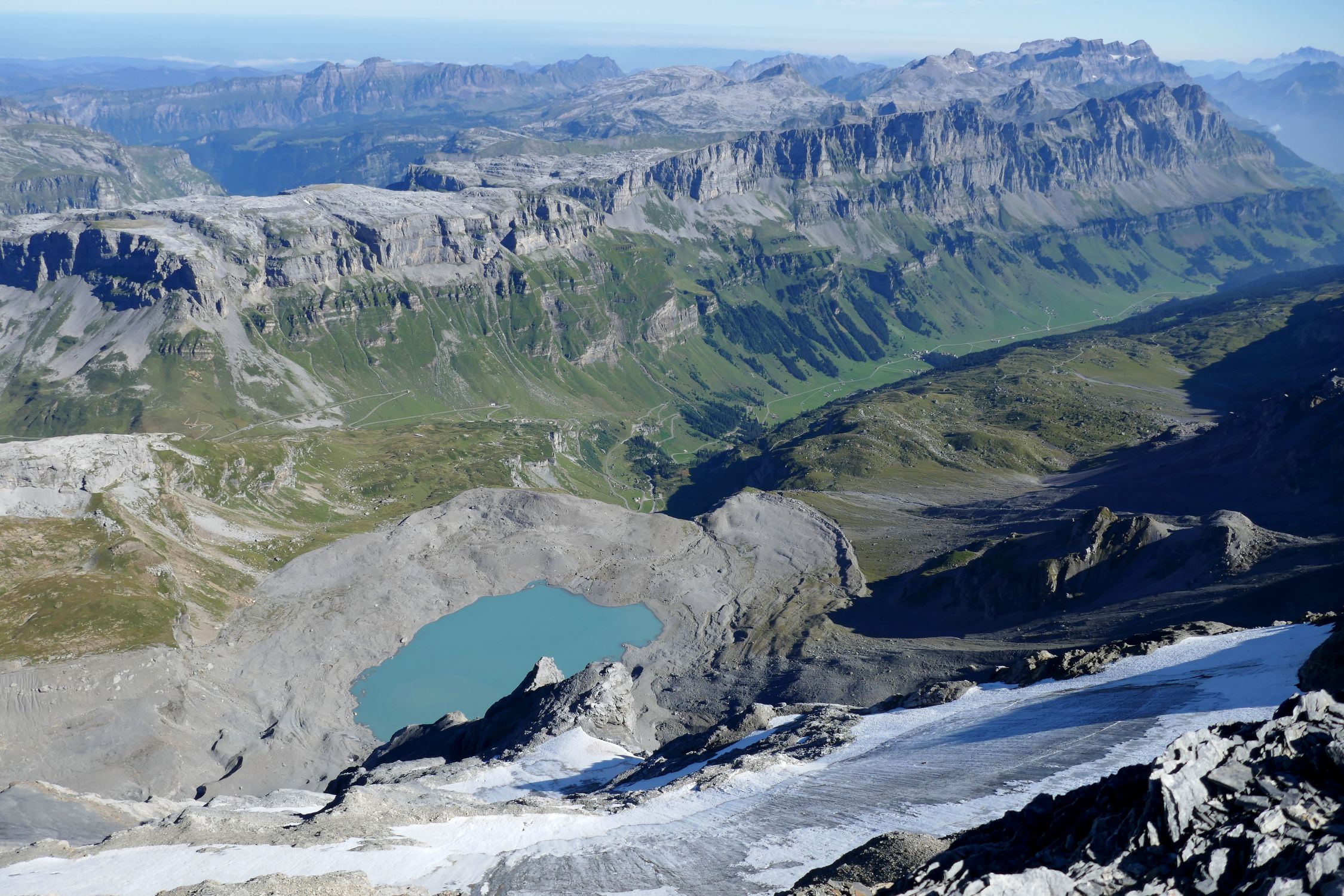 Der Claridenfirn wird auch immer kleiner, aber vorübergehend ist sie noch da. Die Aussicht sucht seinesgleichen. Vor allem der Kontrast mit Weitsicht zu den Ost- Zentral- und Westalpen und der schönen Tiefblick machen diesen Gipfel einen wahren Aussichtsmeister.
