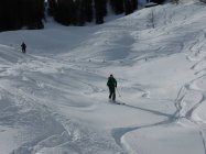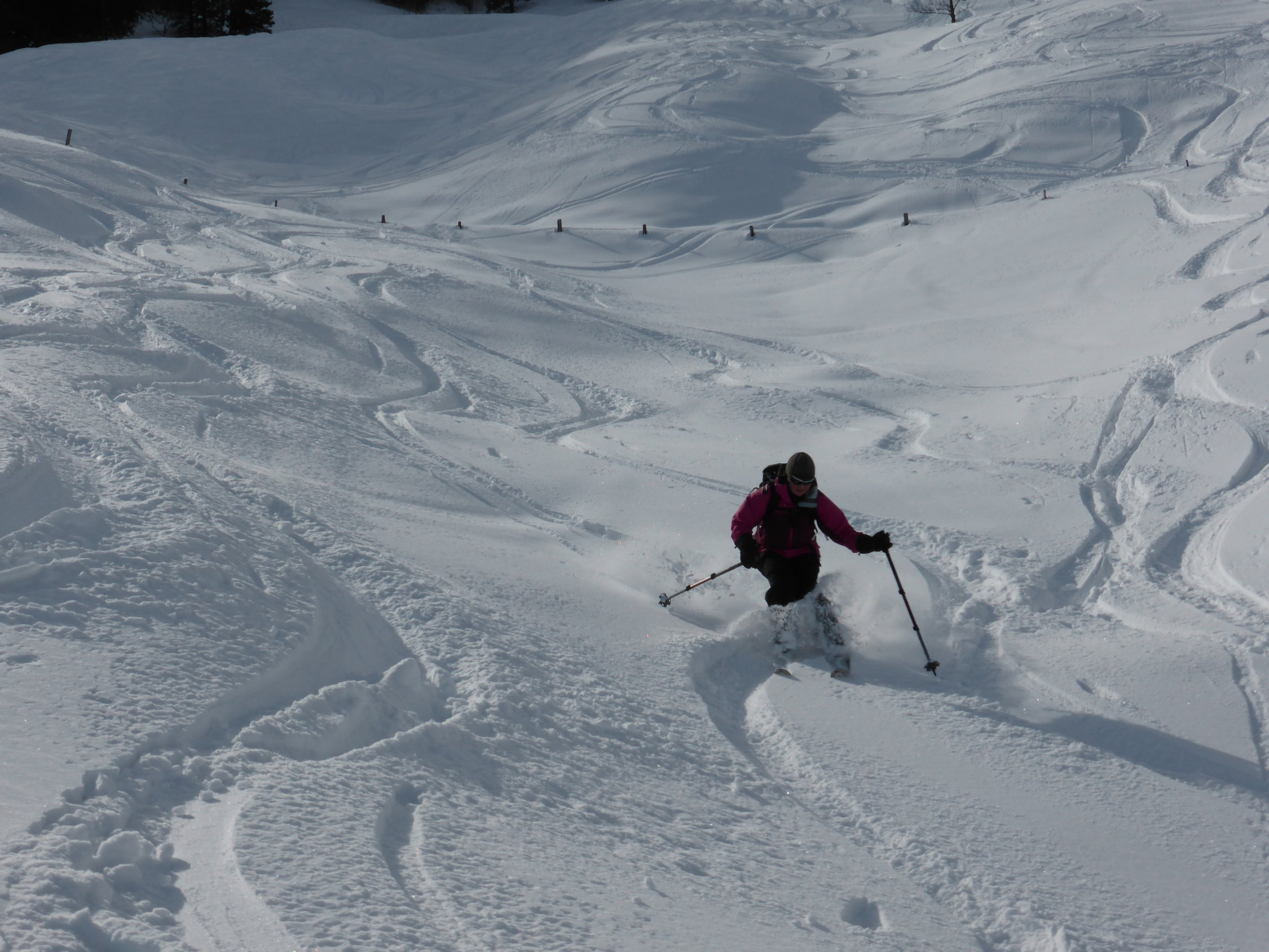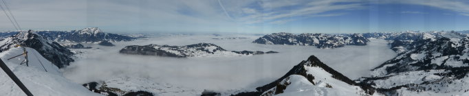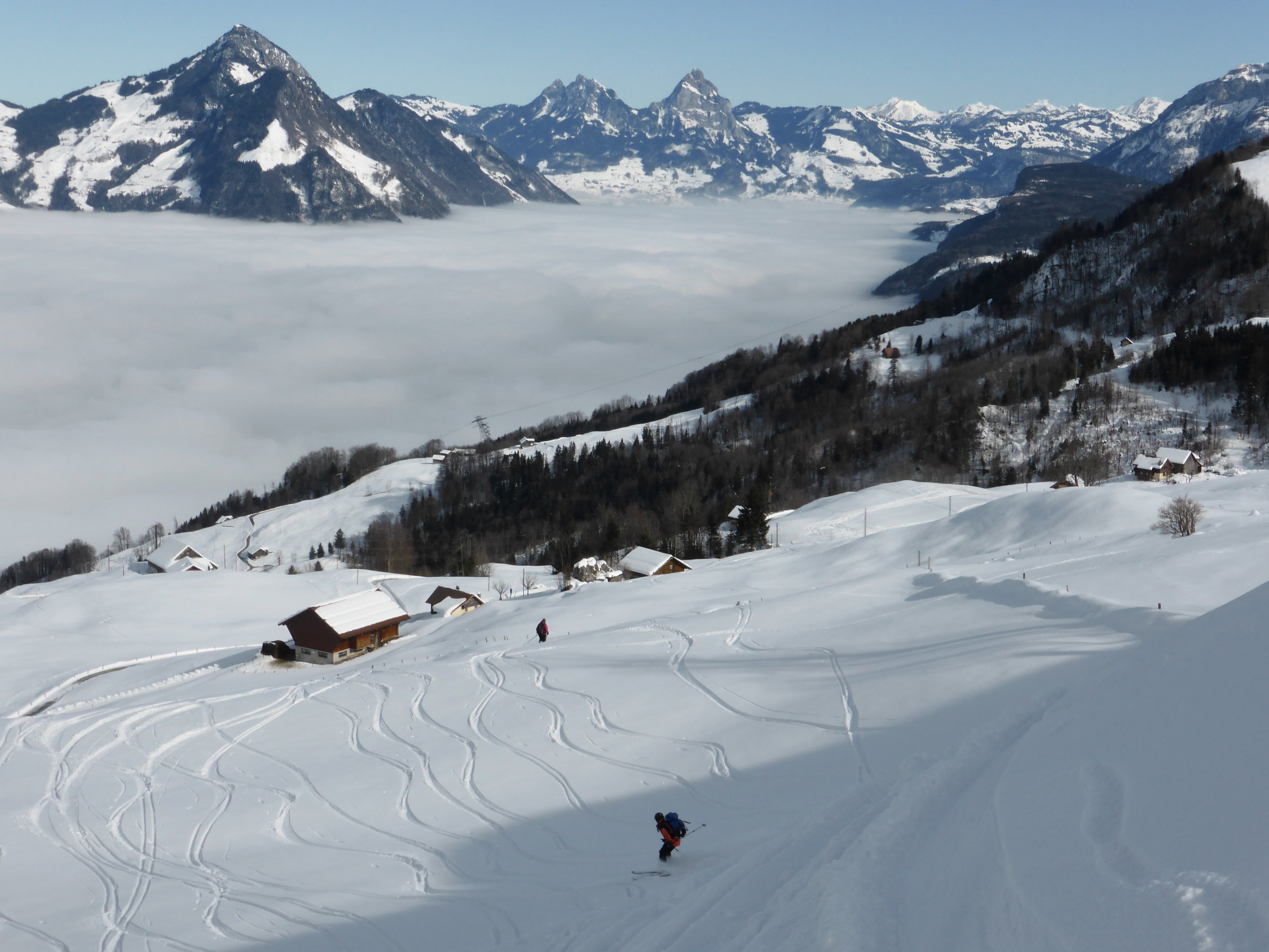 Abfahrt; Gipfelflanke hart bzw. leicht angesulzt, ab Bleikigrat 1592m Pulver pur bis ca.600m, danach kurz(etwa 50Hm) Bruchharsch, anschliessend bis nach Beckenried 450m gut zufahrender Sulz