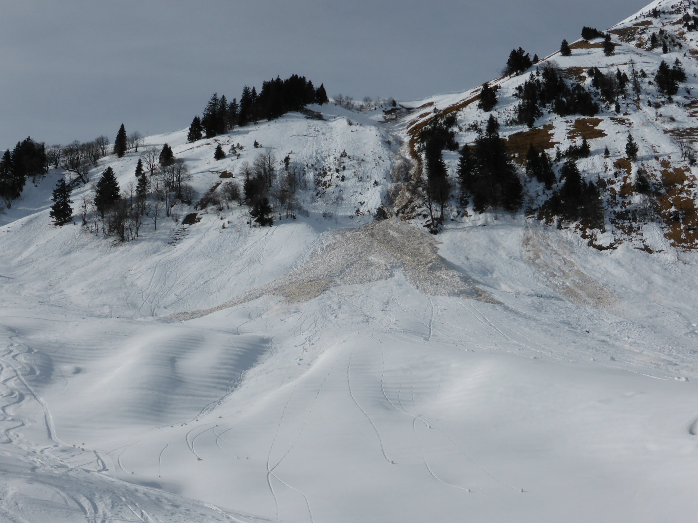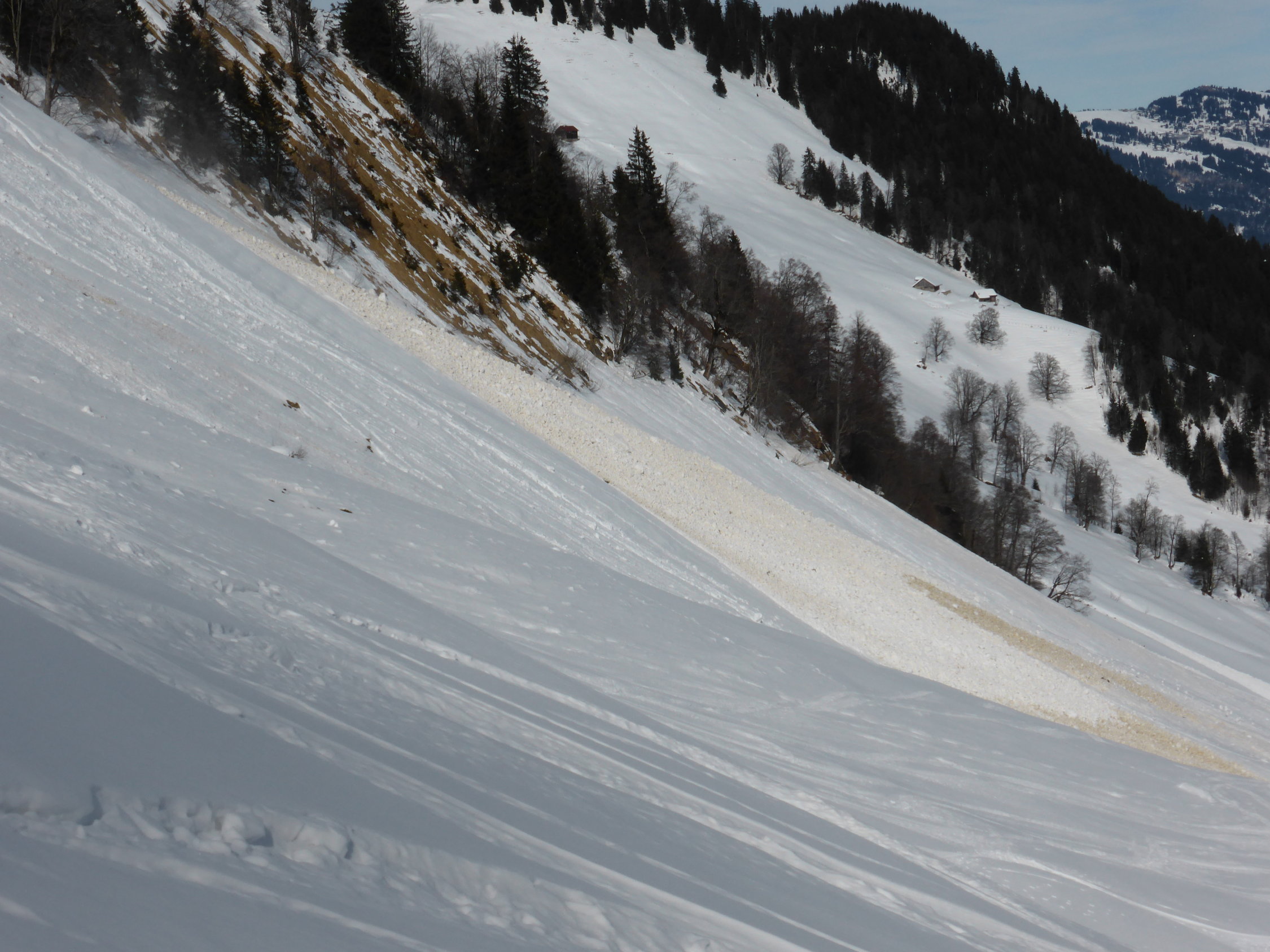 spontaner Lawinenabgang mittlerer Grösse in der Ostflanke (siehe Bilder) um 12.45Uhr