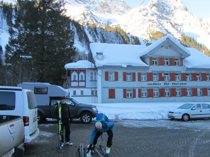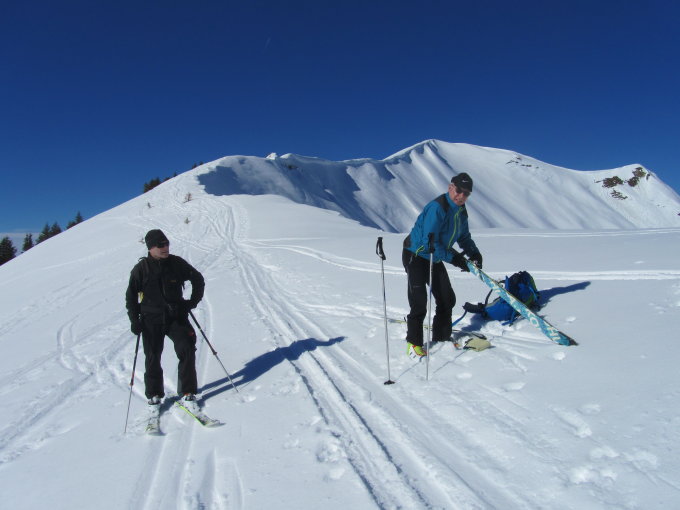 Wolkenlos, südseitig Firn, nordseitig Pulver. Die Tiefschneehänge zur Pisialpe waren leider schon ziemlich zerfahren. Den letzten Gipfelhang aus Sicherheitsgründen nicht gemacht. Wäre jedoch machbar gewesen. Ein Skitourengänger ist nach uns auf den Gipfel!
