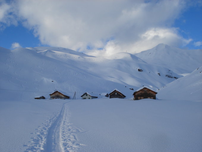 Abfahrt über Ostseite nach Waldi- Rinderplangg-Schlenggen zum Schwarzenbach braucht dringent gute Lawinenverhältnisse, oberhalb Waldi ist ein sehr steiles Couloir !