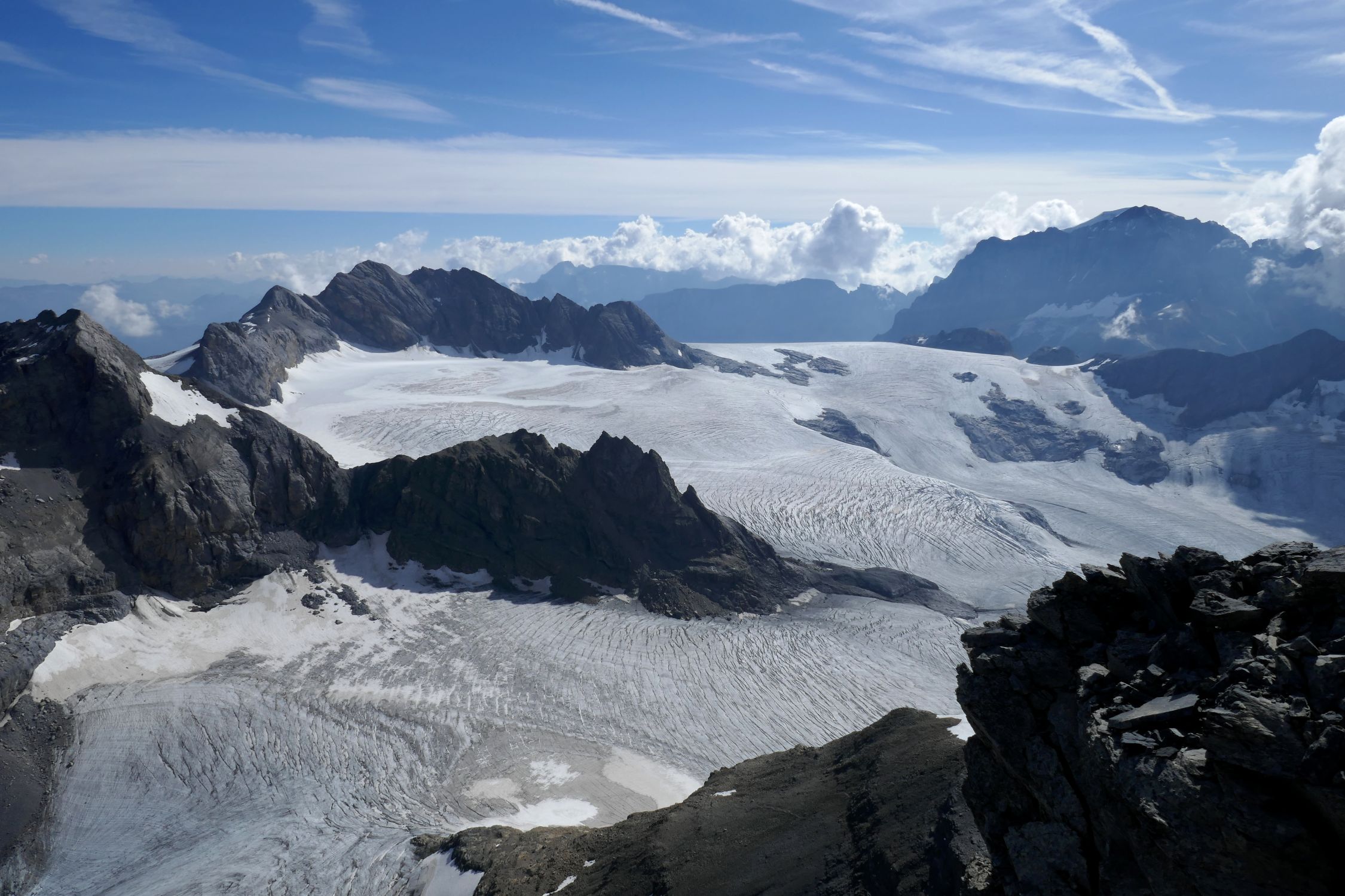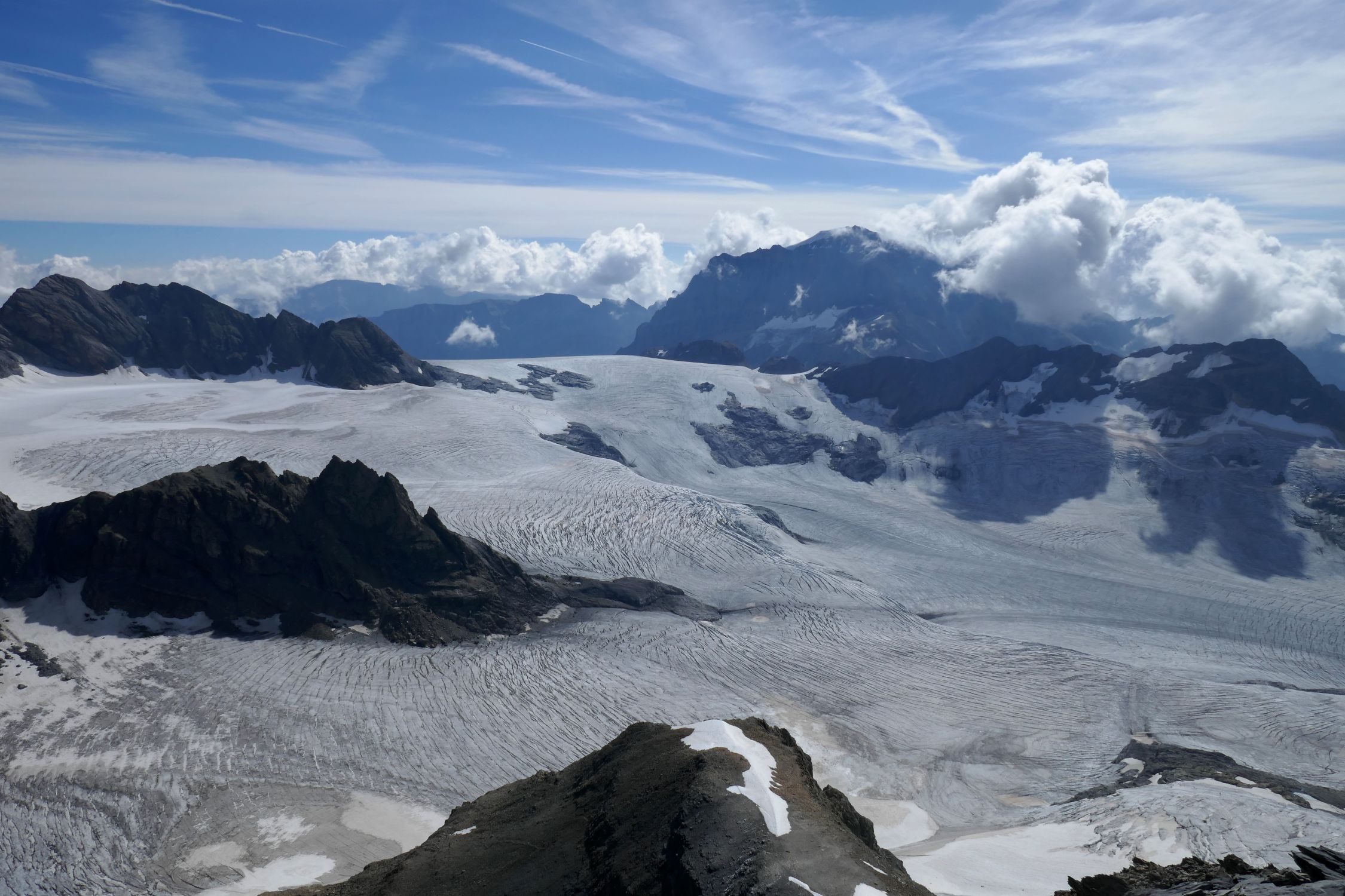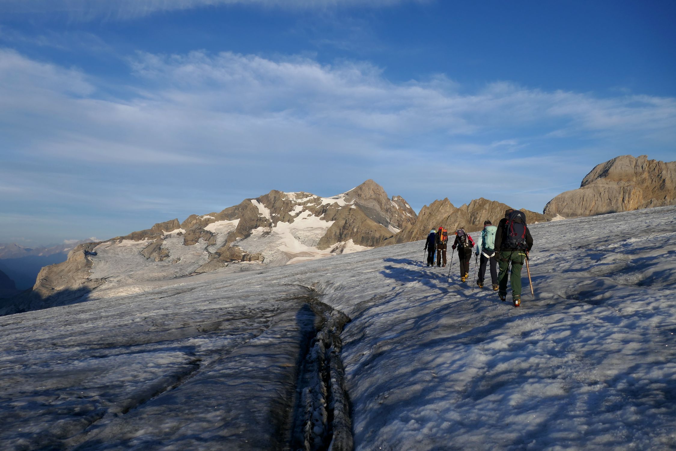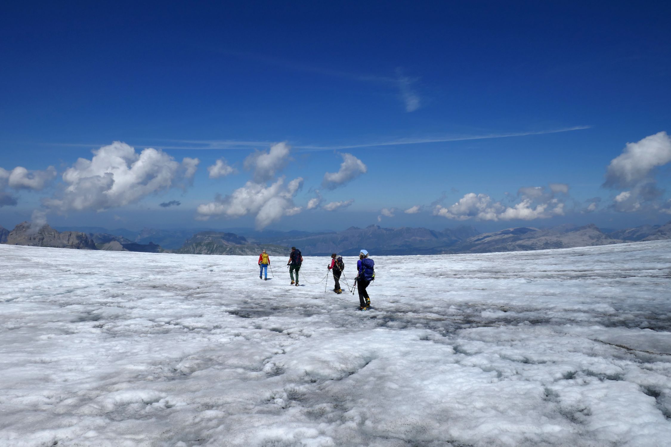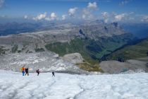 Die Gletscher waren grösstenteils aper, sodass bis unterhalb der Chammlilücke ohne Seil gegangen werden konnte. Ab der Chammlilücke praktisch alles Schneefrei.