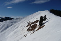 heute Früh war Lawinenwarnstufe gering. Nordhang bombenfest. Event. mit Sonneneinstrahlung & Durchfeuchtung weitere Gleitschneeabgänge am Süd-Ost-Hang der Seekarspitze