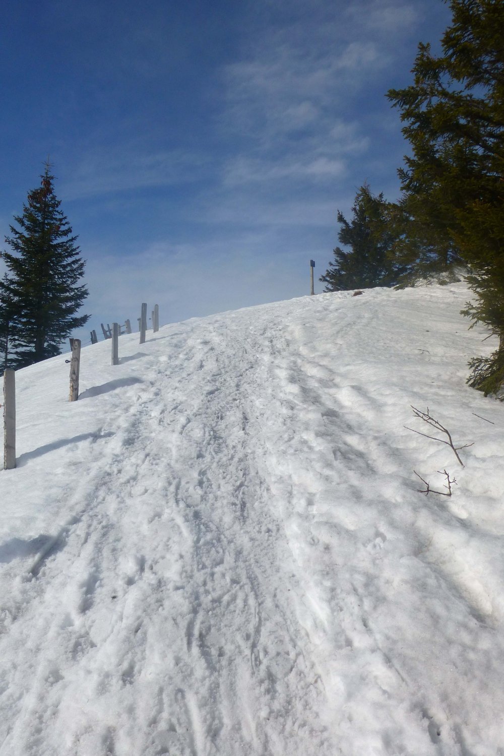 War "nur" die Plan-B Tour, da ich den Zug und damit die SAC-Tour auf den Misthufen verpasst habe. Da die Tour bei Schneeschuh-Läufern äusserst beliebt ist, mit Ski im Aufstieg etwas mühsam, da oft in der Schneeschuh-Spur aufgestiegen werden muss. Die Abfahrt nach Goldau ist bis ca. 1100m auf der Spizibüelalp ganz ok, danach nur noch eine Katastrophe (kaum mehr Schnee, die geräumte Strasse muss mehrmals gequert werden sowie Zäune die den Weg versperren). Besser nach Sattel, Eco Homo oder Steinerberg runter fahren.