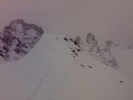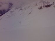 Einige Nassschneerutsche am Raufli Südostgrat gesehen. Einer hat den Steinboden erreicht.