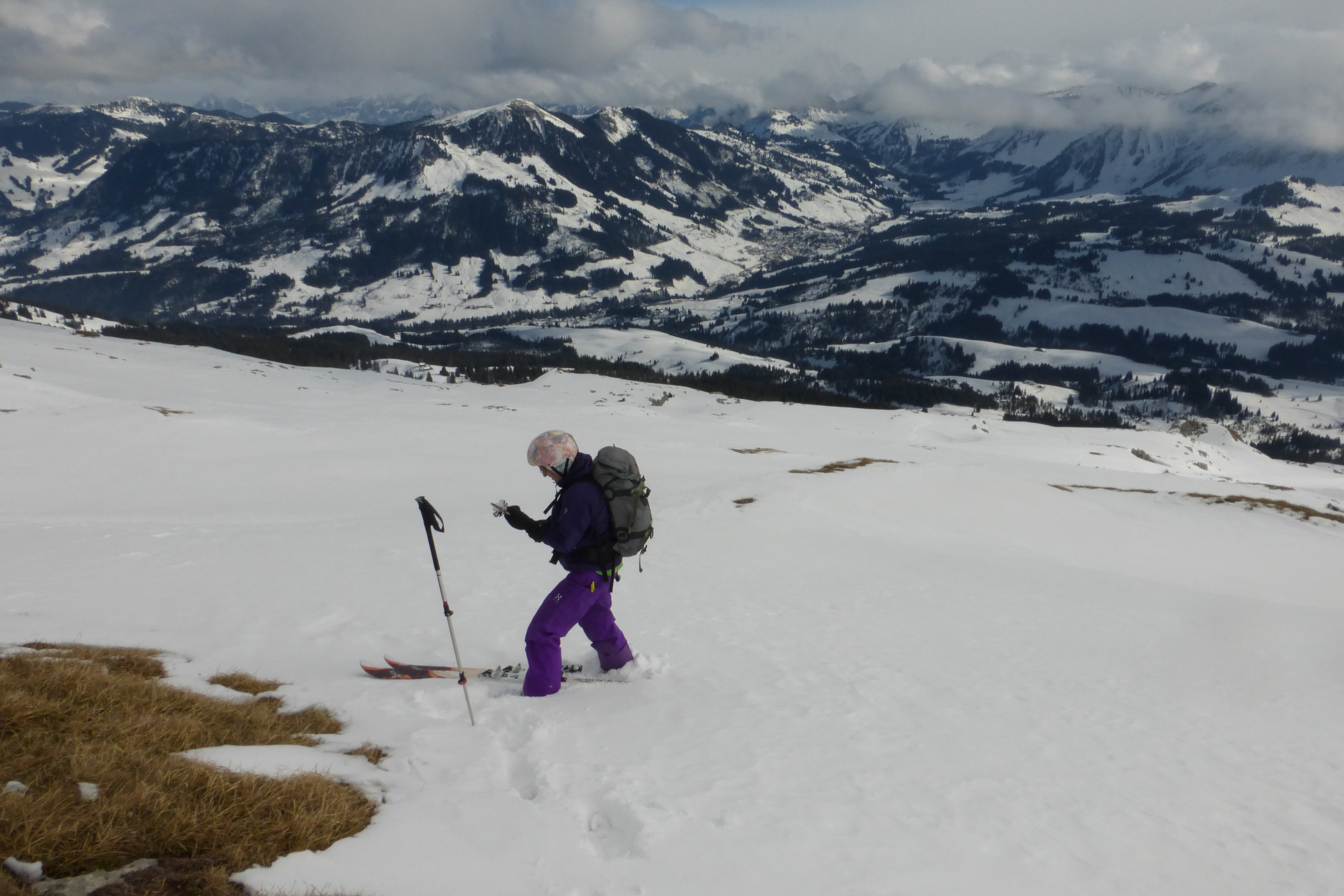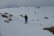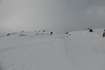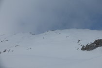 Wetter wie durch Meteocentrale und Alpenwetterbericht vorausgesagt. Aufstieg unten auf griffiger Spur, oberhalb Wald vermehrt gefrorene Spur. Ursprünglich wollten wir vom Gipfel den Gipfelhang rechts (Südwestlich) abfahren. Diese bedingt aber die Felle nochmals aufzuziehen...Da es den Anschein machte, dass es im oberen Teil zu machte, haben wir uns entschieden den Gipfelhang nicht zu machen und direkt zum Vorgipfel aufzusteigen. Den südwestlich vom Hengst gelegenen Hang mit Exposition Südost, haben wir uns für später aufbehalten.