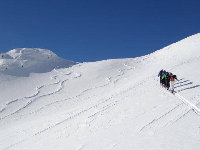 Schnee z.T. verblasen, sonst gut fahrbar.
