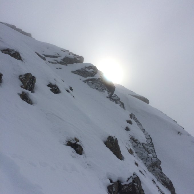 Das Nordwestcouloir wurde in den letzten 2 Tagen begangen. Die Aufstiegsspur war sehr genial angelegt. Besten Dank dem unbekannten Spurer! Leider war heute der Nebel