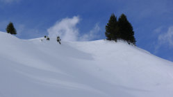 Altschneesituation mit gut tragendem Deckel, schwacher Föhn. Nachmittags aufsulzend.