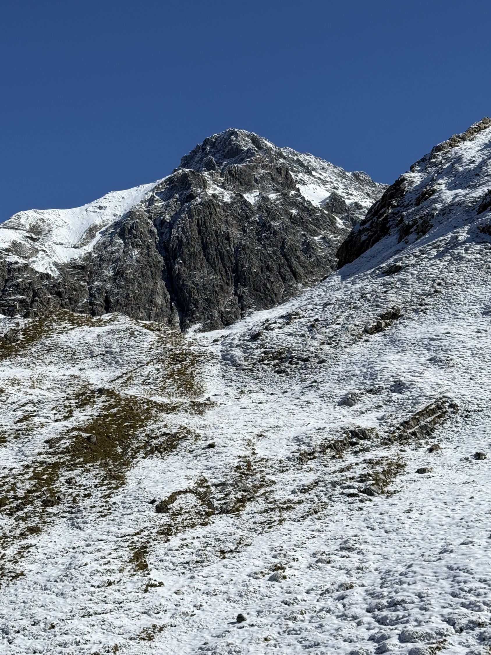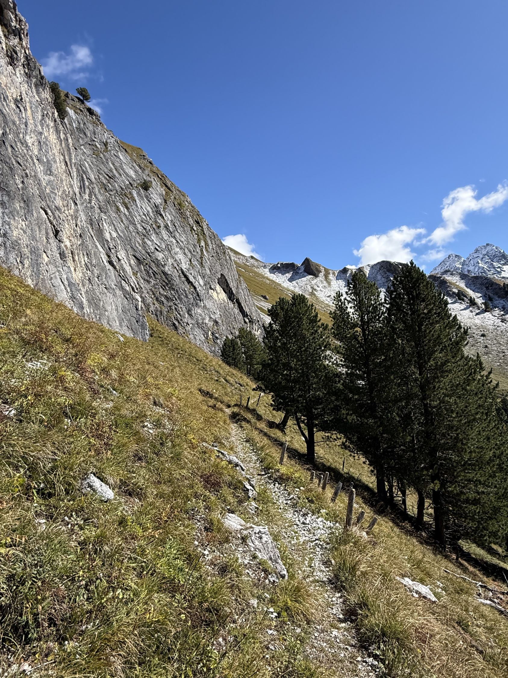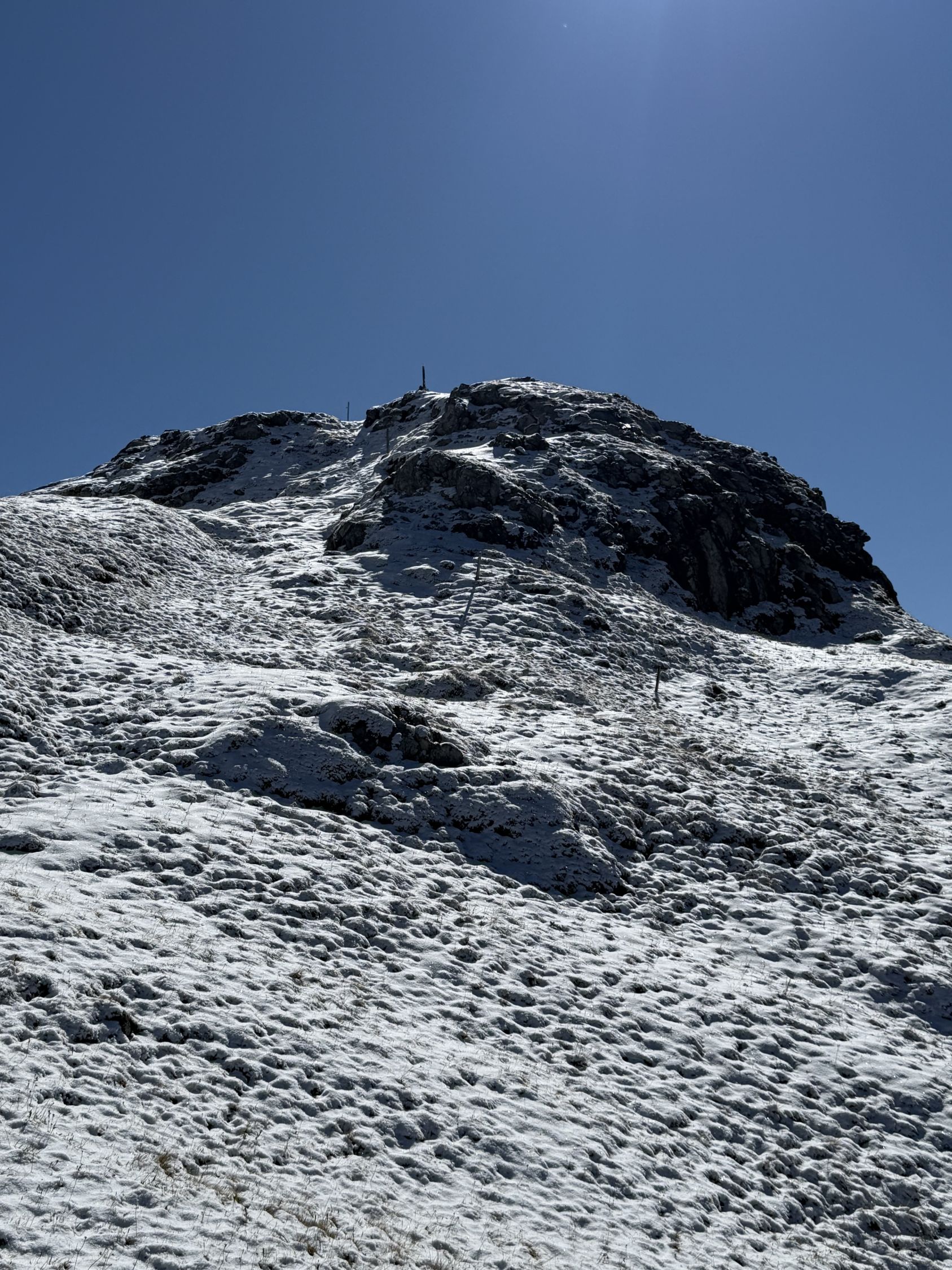 Winterliche Rundtour auf den Grat und unter den markanten Felswänden zurück nach Preda, T3+. ÖV Tour, Start Bahnhof Preda 8.30, 0 Grad, blauer Himmel, windstill. Im Wald kein Schnee, ab Punkt 2138 Schnee bis zum kleinen Gipfel auf dem Westgrat Igl Compass Höhe 2400 m. Abstieg im Schnee zu Punkt 2139 und ohne Schnee unter den markanten Felswänden nach Preda.