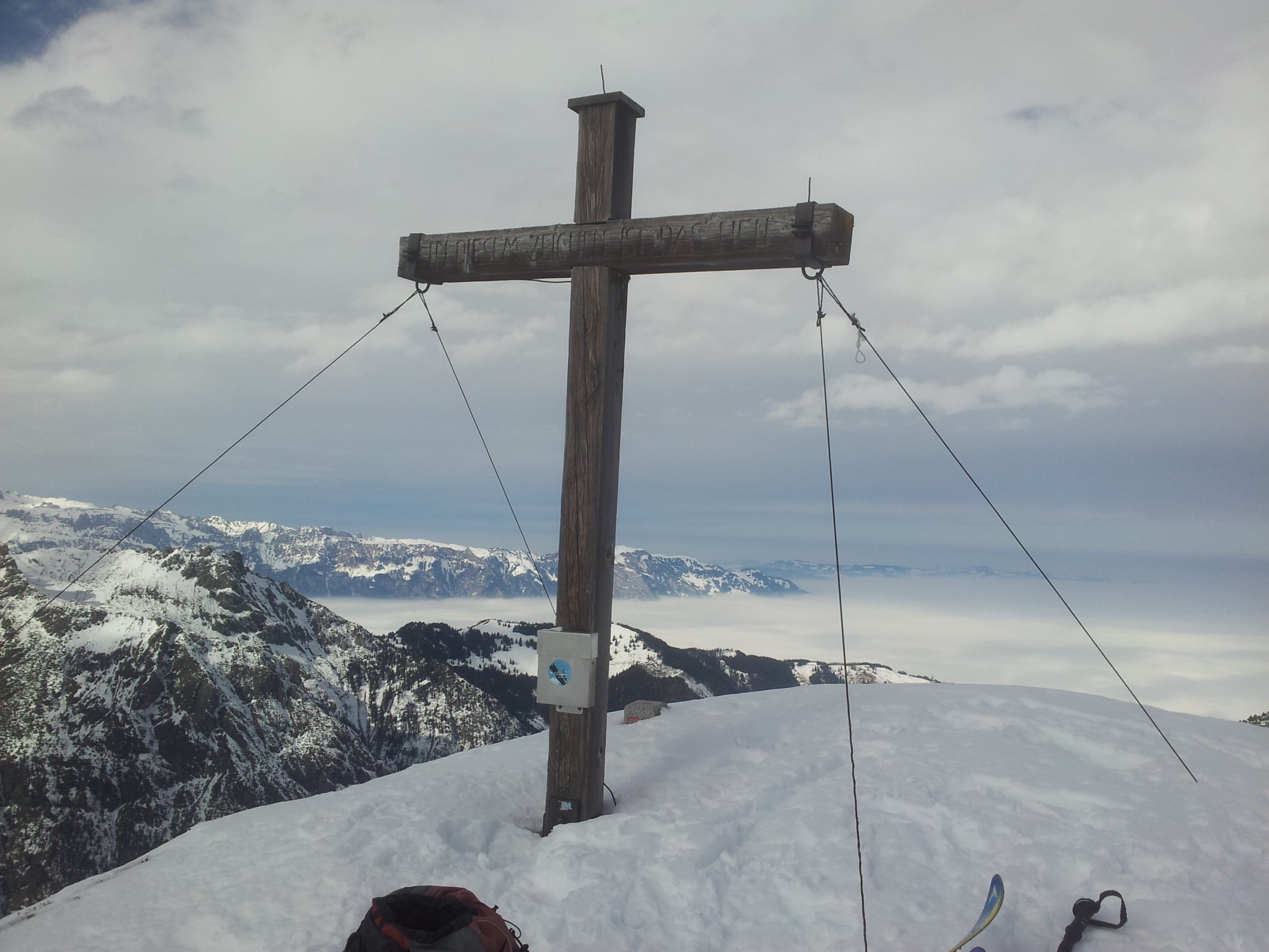 Solange kein Neuschnee in die steile Gipfelflanke einschneit, sehr gut machbar, wenn man eine längere Horizontaltraverse nicht scheut. Selten besuchter Gipfel, Hin und Zurück 5 Std mit Rast und kurzem Gegenanstieg mit Auffellen. Lässt sich auch als Schneeschuhwanderung zumindest bis Mattafürkle (1800m) machen.