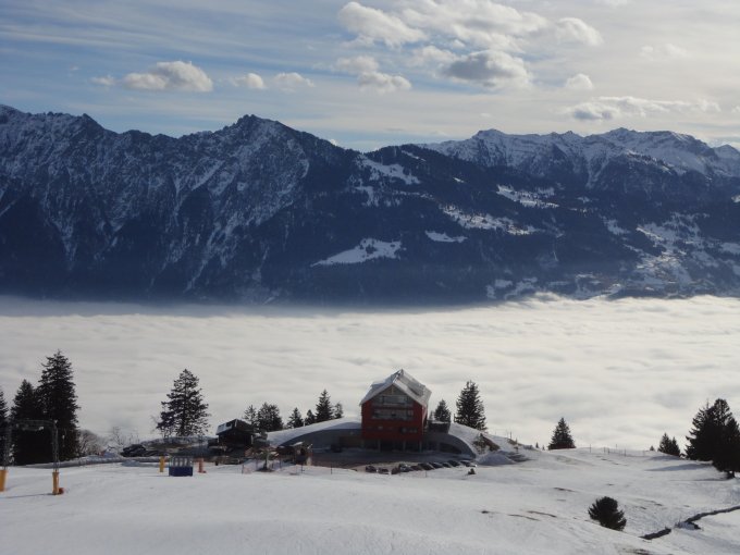 Hochnebelgrenze morgens etwa bei 800 m, im Tagesverlauf etwas ansteigend. Das Rheintal blieb den ganzen Tag unter der Nebeldecke versteckt. In exponierten Bereichen föhnig-stürmisch mit unterschiedlicher Bewölkung. Nicht allzu kalt.