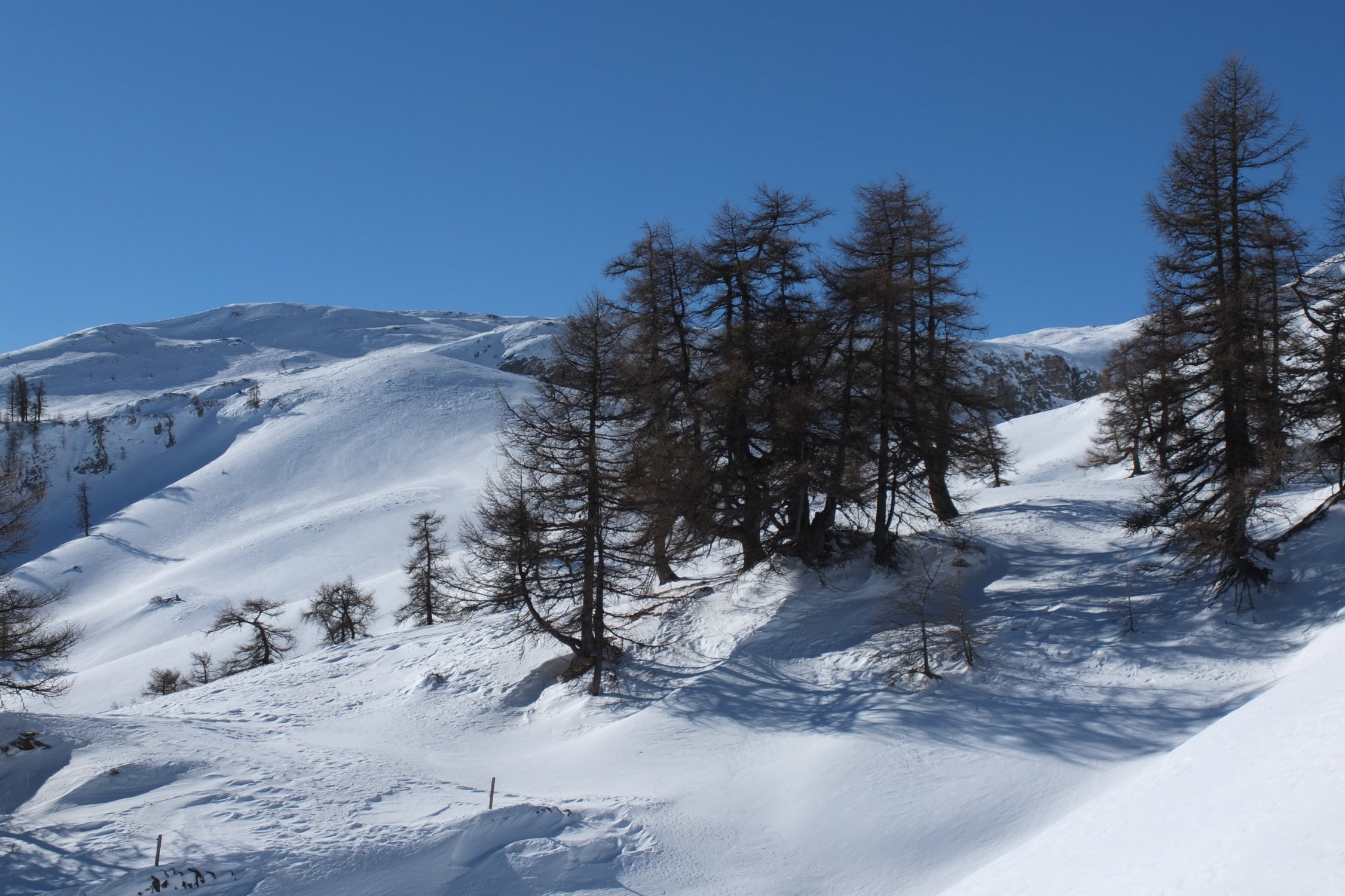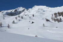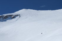 Der Alpweg bis zur Vazer Alp ist gut eingeschneit, nur einmal mussten wir die Skier kurz tragen. Die Abfahrt bietet alles, von kleinen Pulverabschnitten bis zu brüchigem Schnee. Die Mulden sind durch Windverwehungen nicht so leicht zu fahren, wie wir uns das gedacht haben, insgesamt aber trotzdem eine lohnende Tour.