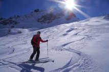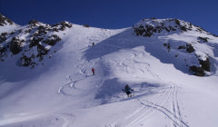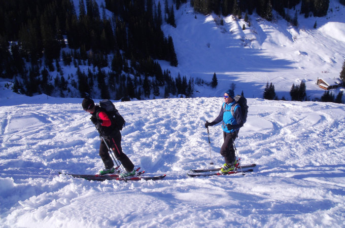 Beste Verhältnisse. Im Aufstieg harte aber griffige Spur - fast schon wie im Frühling. Die Abfahrt vom Riedchopf zerfahren. Gute Aufstiegsspur zum Rotspitz. In der Abfahrt vom Rotspitz gibt es noch viel unverfahrenen Pulverschnee. Stabile und sichere Verhältnisse.