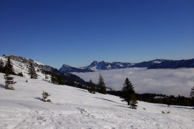 Wetter bis ca 1500m Nebel, am Nachmittag bis ca 1300m sinkend, darüber wolkenlos / sonnig.