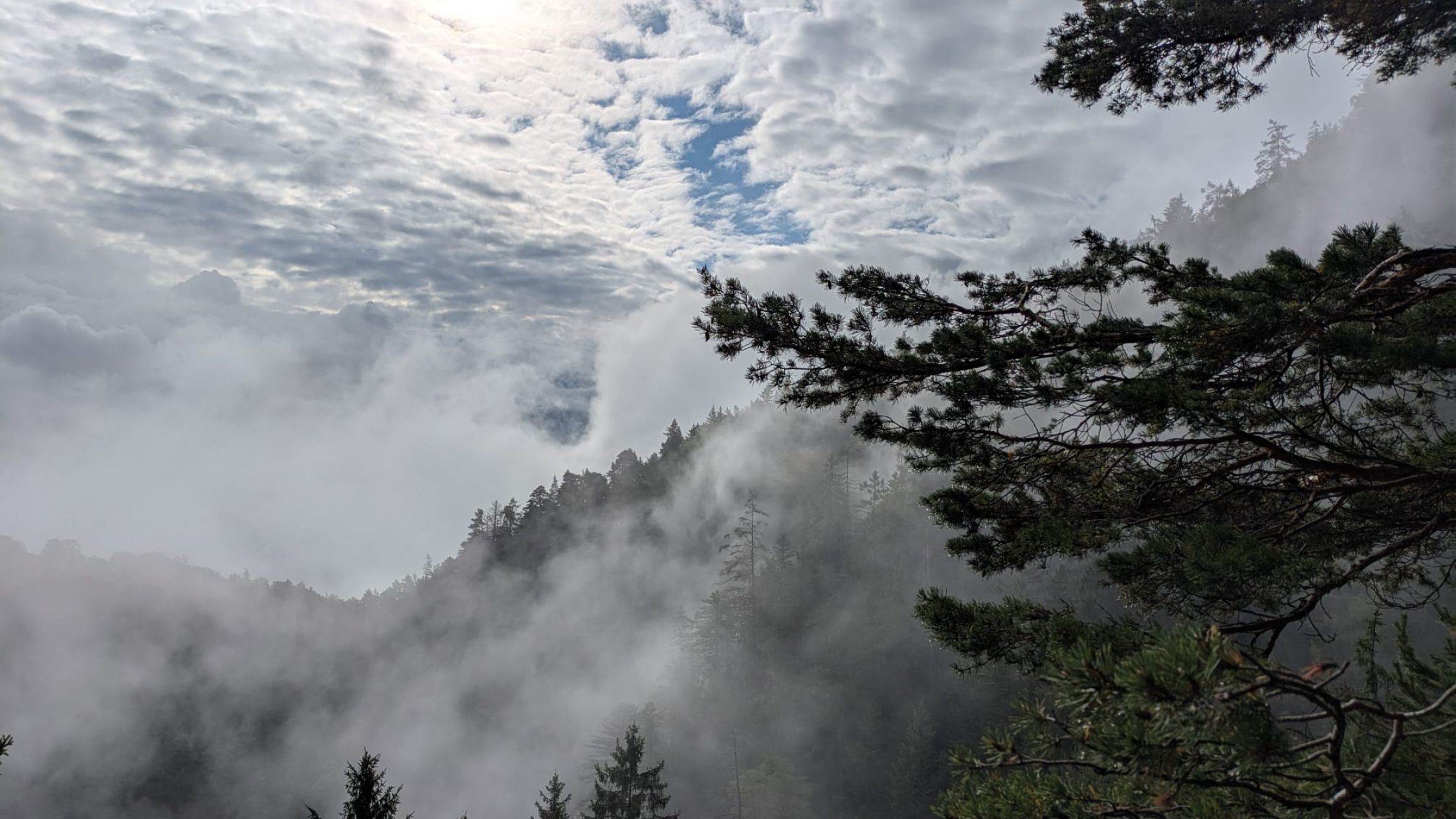 Gut. D.h. Zuerst noch Nebel. Ab 12.00 Uhr zeigte sich die Sonne. Von der Temperatur her war es angenehm zum Klettern. Es hatte einige Nasse Kletterstellen, die man jedoch problemlos umgehen konnte.