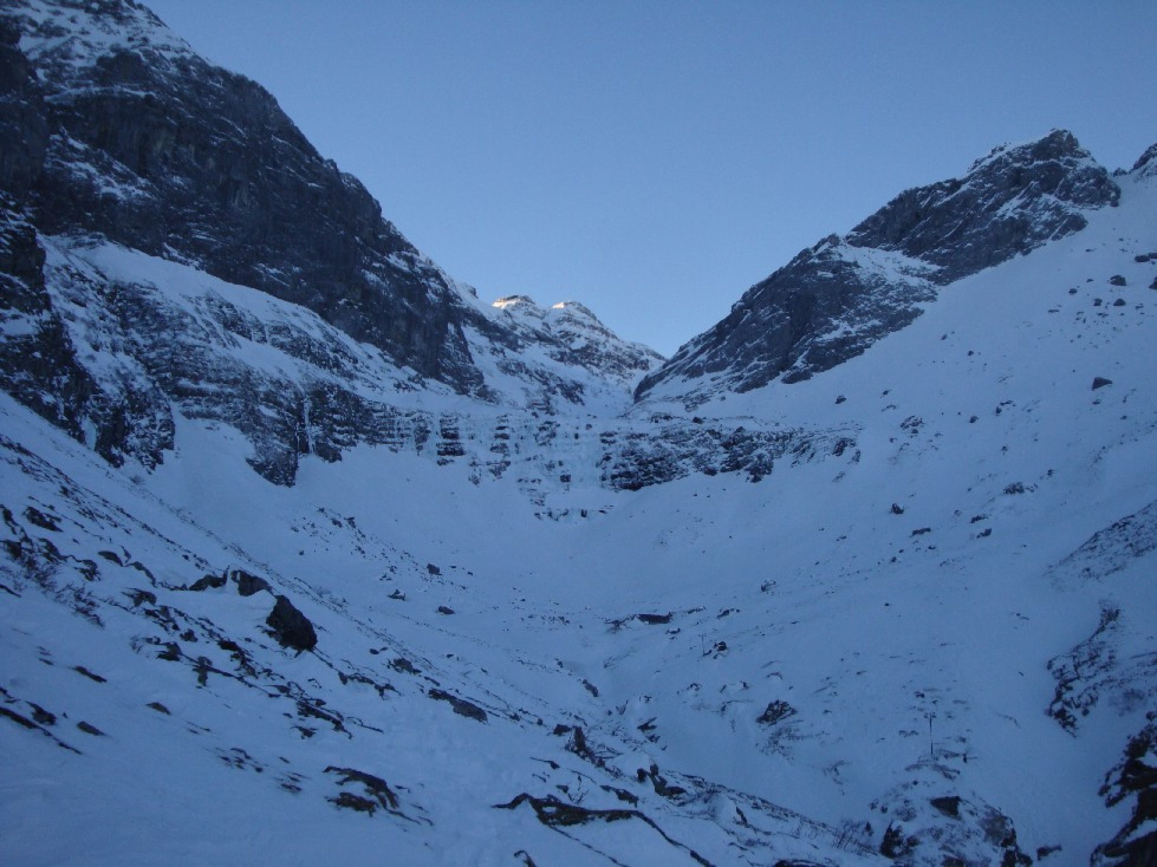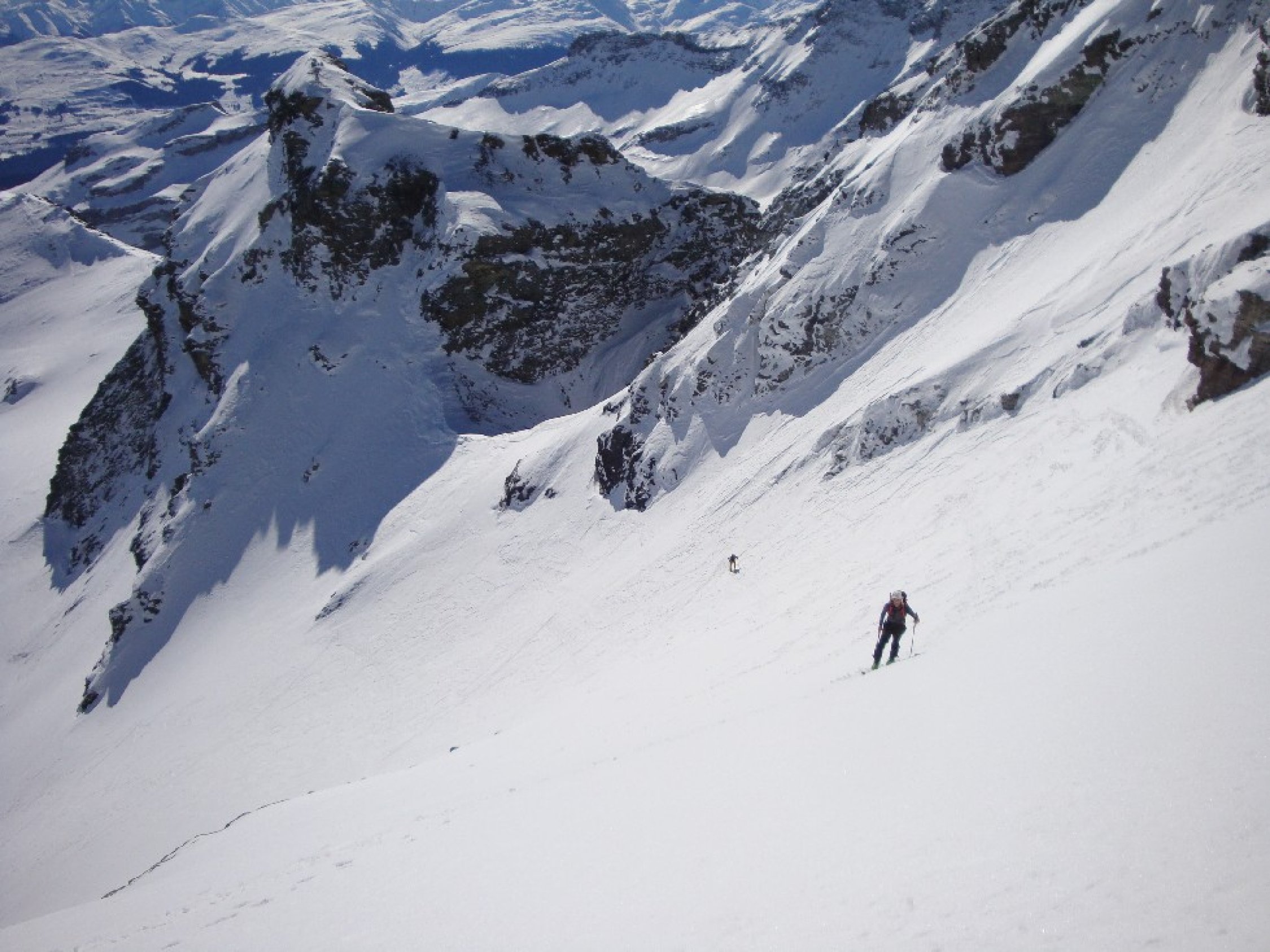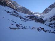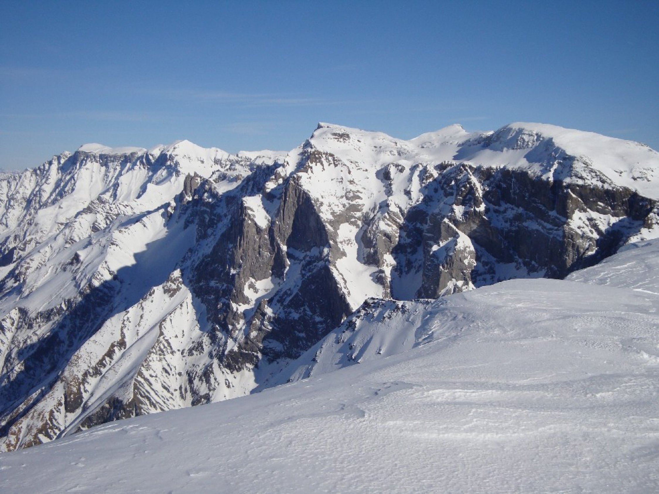 Start in Wichlen um 7Uhr bei -5°C. Aufstieg über Oberstafel bis zum Häxensee sehr hart. Harsteisen leisteten gute Dienste! Danach angenehm bis zum Panixerpass. Endlich eine Pause in der Sonne. Weiter gegen den Hausstock nun in der Sonne und es wurde immer wärmer je höher wir stiegen. Die lange steile Gipfelflanke ging recht gut. Am Schluss 20Hm Skitragen und dann wieder mit den Skiern bis auf den Gipfel. Hier Mittagspause und das Rundumpanorama mit Sonne satt und keine Wolke weit und breit genossen. Abfahrt direkt vom Gipfel zur zeit gut machbar. Mehr der weniger tragender Deckel von oben bis unten, mit teilweise wenig Powder obe drauf, aber wirklich nur wenig. Fahrt bis etwa 2550m. Nun erneut Felle montiert und schweisstreibend auf das Horen (Ost) gestiegen. Der oberste Teil von der Gipfelabfahrt übel hart und mit Steinen gespickt. Danach Sorbepulver bis zum Häxensee hinunter. Der Rest der Abfahrt war dann leider nur noch zum vergessen. 20Km Rundtour mit 2100Hm bei Kaiserwetter hat sich so oder so gelohnt!