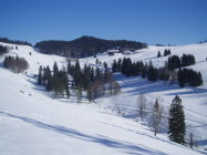 Trotz der warmen Witterung eine recht gut tragende Schneeschicht. Abschnittsweise ist eine Aufstiegsspur gelegt, insbesondere von Todtnau bis zum Hasenhorn-Bergrestaurant. Hin und wieder muss Gelände bedingt auf dem schmaleren, verspurten Wanderweg gegangen werden, insbesondere beim Aufstieg auf das Herzogenhorn um den Grossen Wächtenkessel herum und bei der Umrundung des Hasenhorns Richtung Gisiboden. Abfahrt auf dem verspurten Wanderweg vom Bernauer Kreuz und Querung auf einem sehr schmalen, leicht abfallenden Wanderpfad durch den Wald Richtung Skilift Hofeck-Bergstation. Hinterwaldabfahrt bretthart, verspurt und stellenweise vereist.
