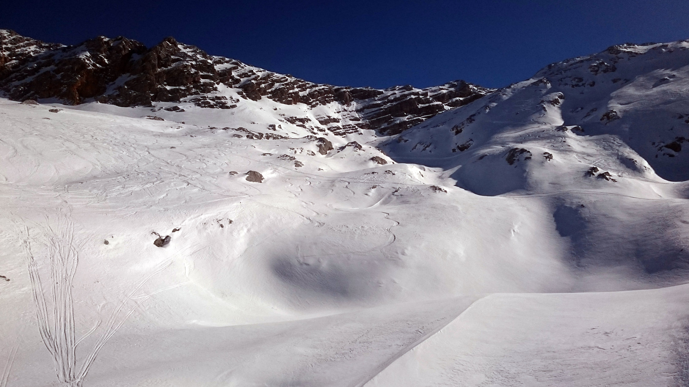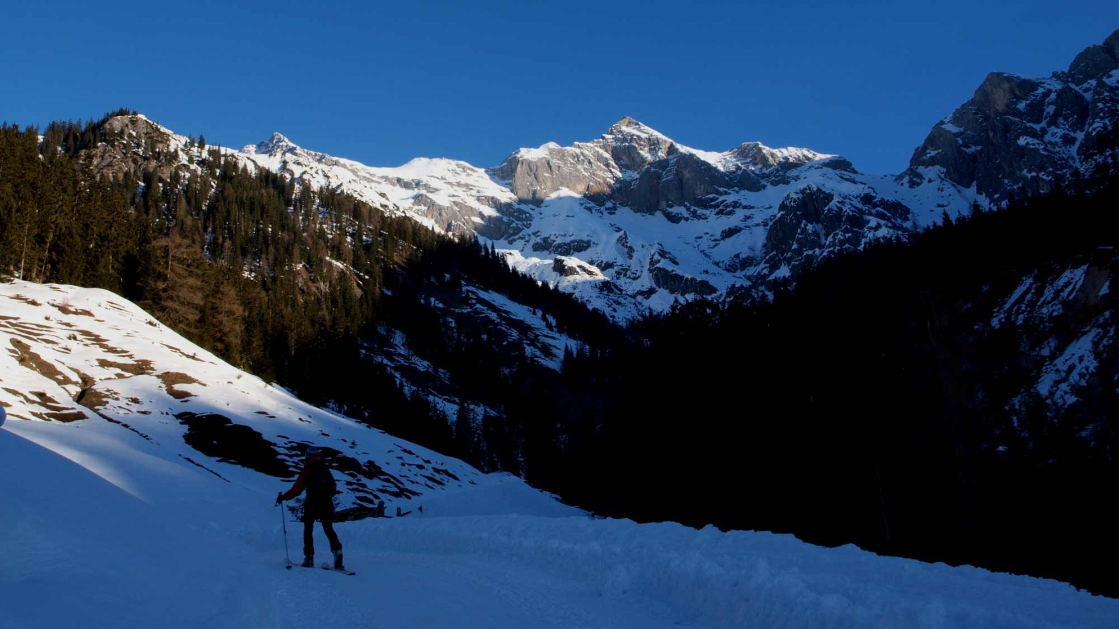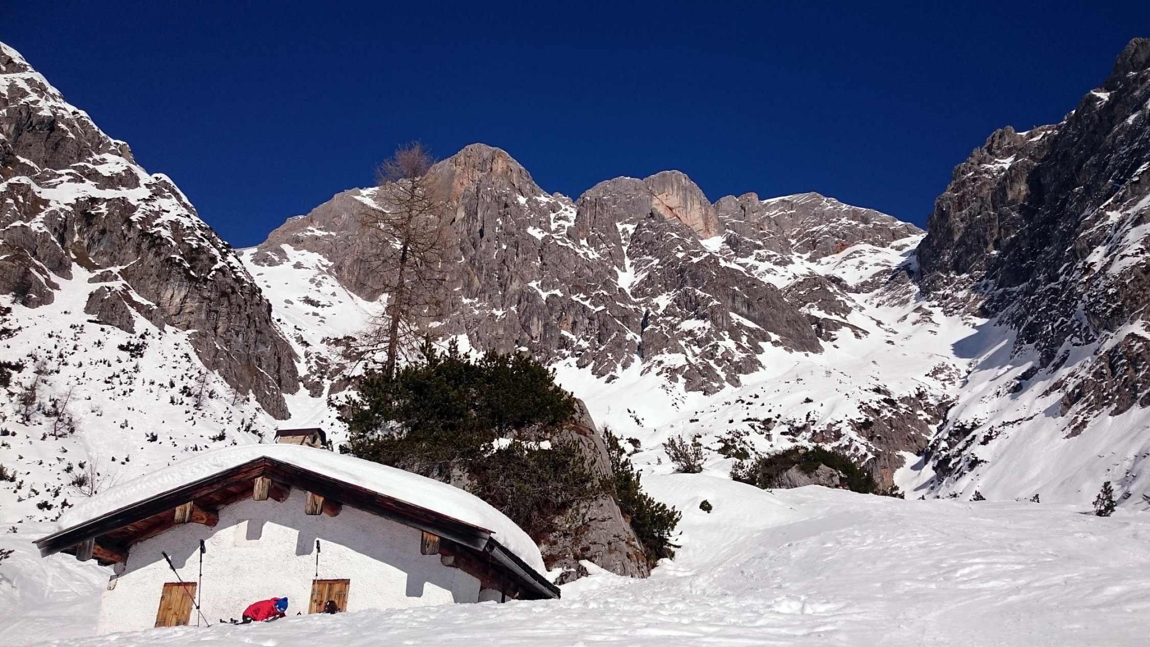 Sehr gute Frühlingsbedingungen sowohl bei Aufstieg als auch bei der Abfahrt. Allerdings ist das ganze KAr gründlich umgepflügt worden, bei Aufstieg sind diese Spuren hart gefroren was den Aufstieg etwas mühsam werden lässt.