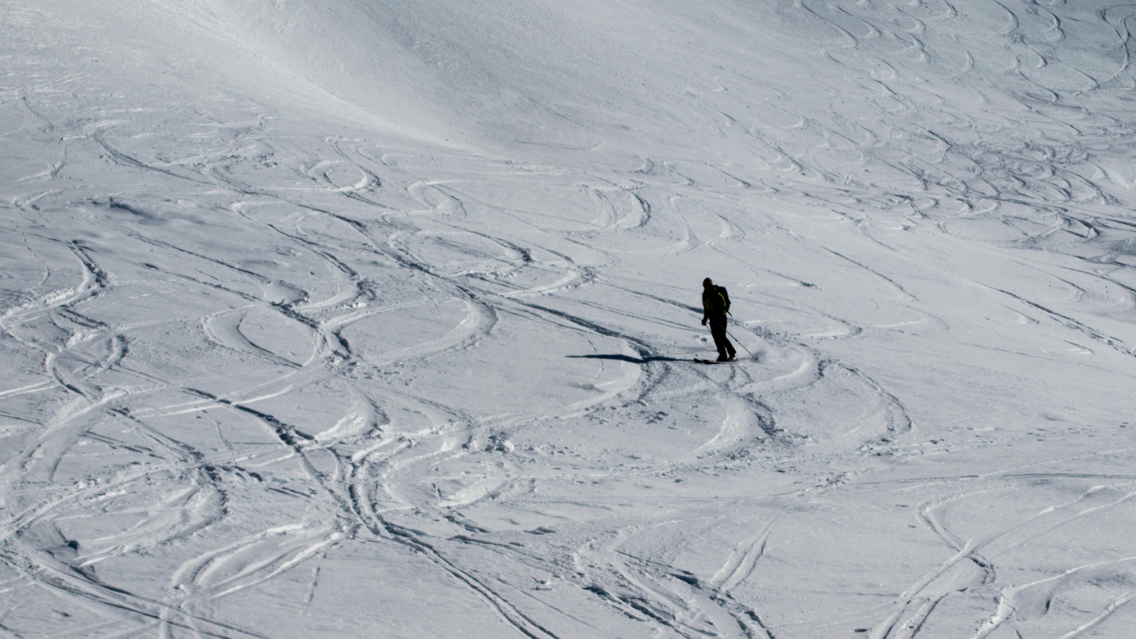 Auch bei der Abfahrt sind die alten Spuren teilweise ncoh hart.