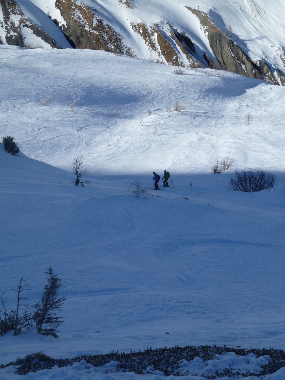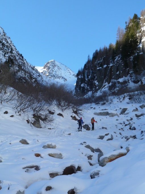 Traumhaft schöne Abfahrtsroute, die keine Wunsche offen lässt. Die etwas mühsame Steilstufe mit Erlenbewuchs im unteren Teil kann westseitig umfahren werden, indem man auf ca. 1900m Höhe stark nach links hält und weiter oben ins Vallon de Nant einfährt.