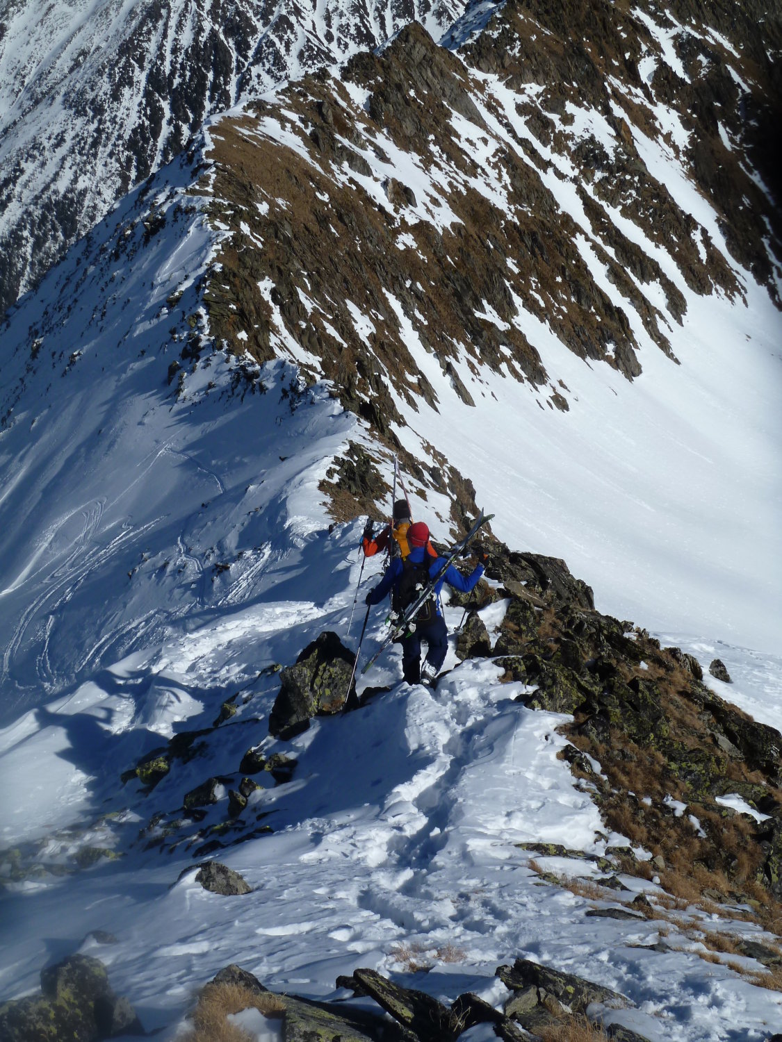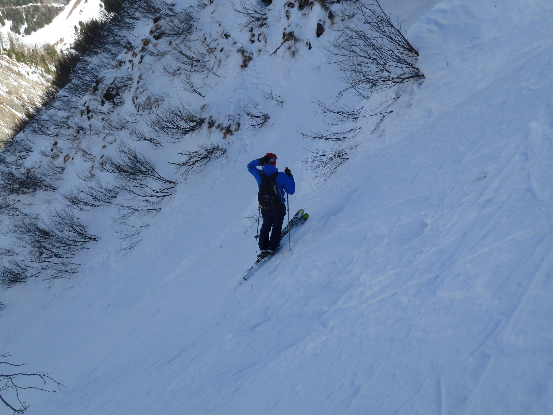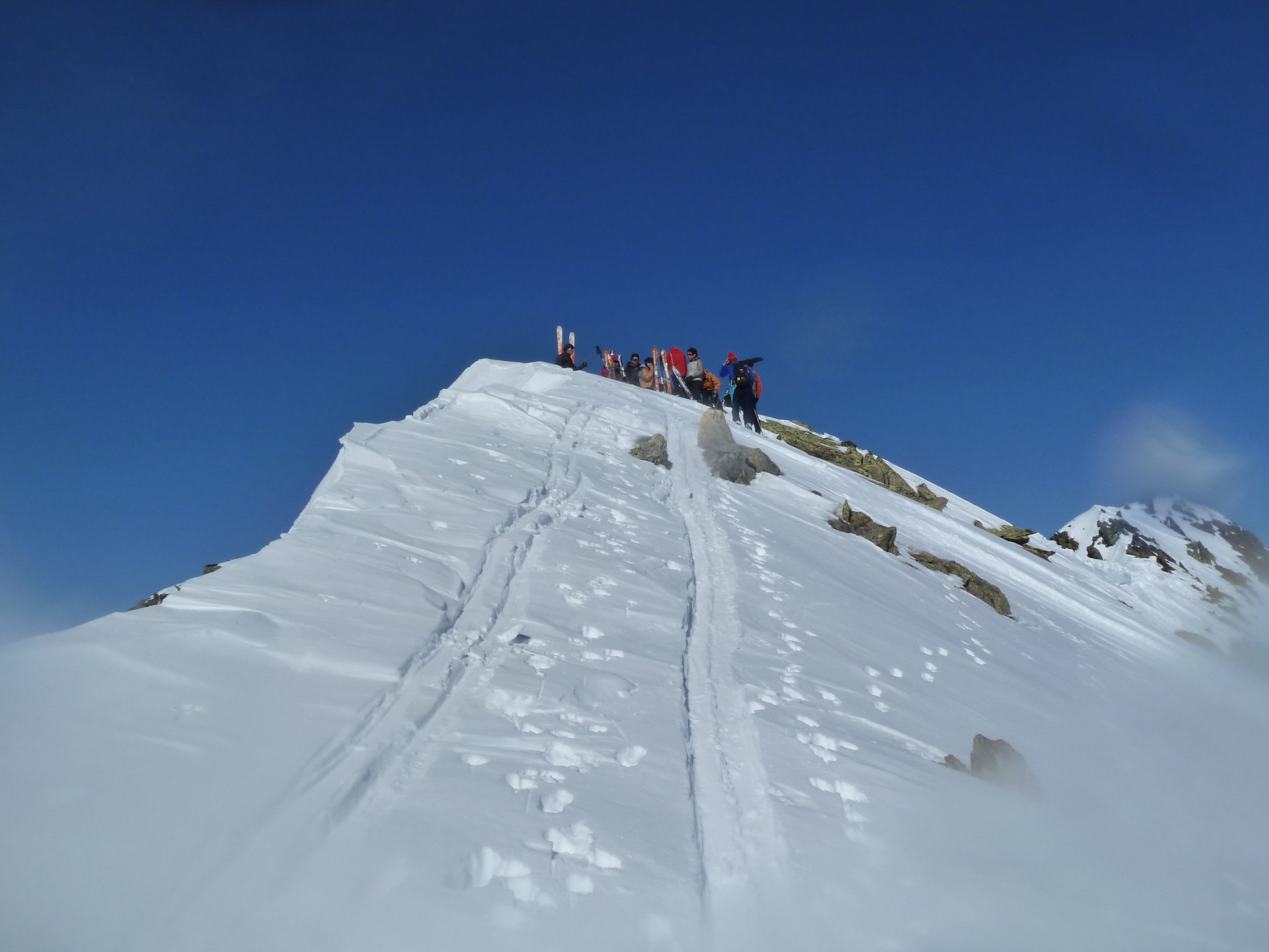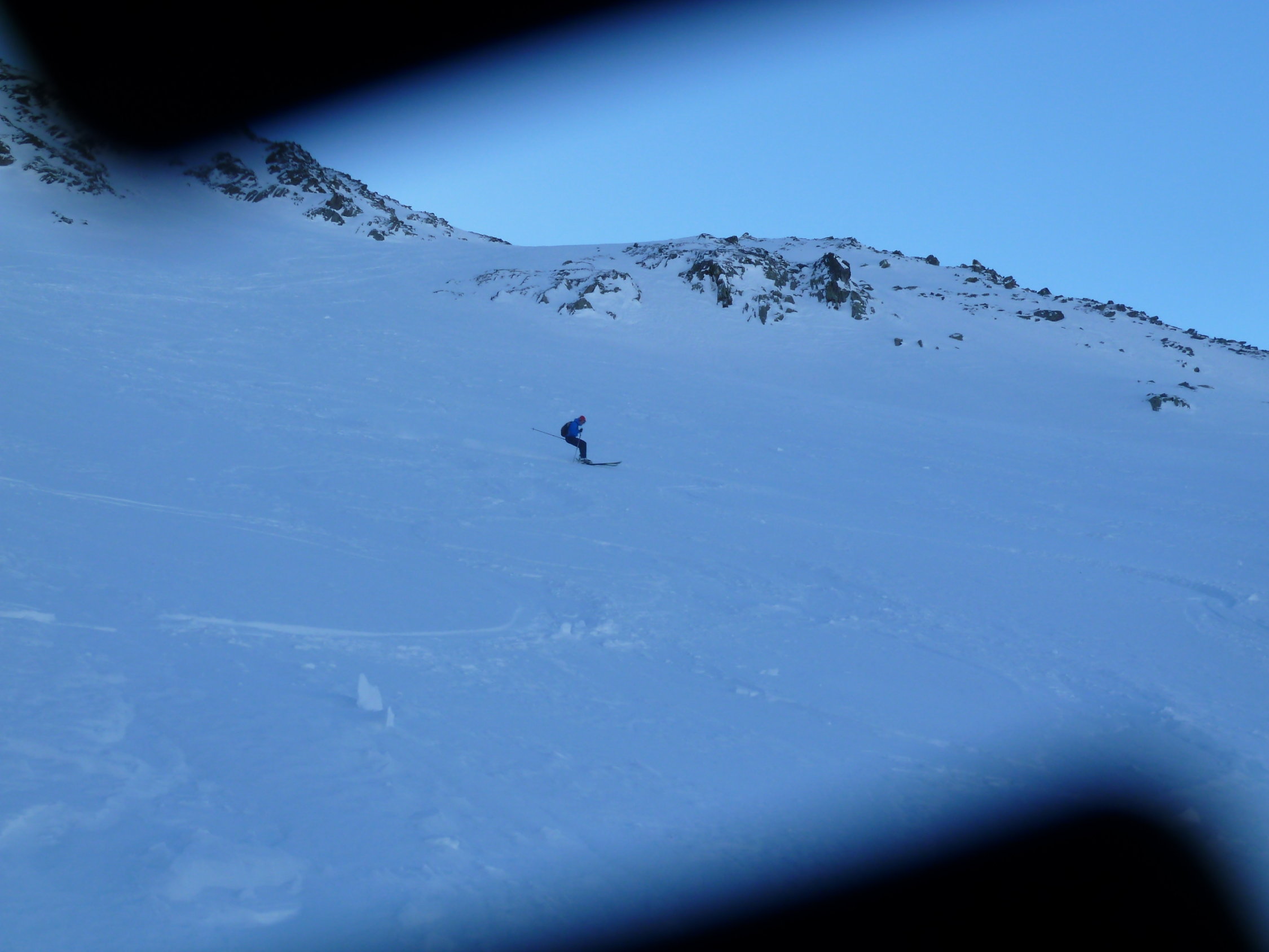 Hervorragende Verhältnisse auf der ganzen Tour, mehrheitlich Pulver vom Gipfel bis zur Steilstufe, im Vallon de Nant hart und ausgefahren (Abfhartsroute Tête de Balme). Leichter Wind aus östlicher Richtung auf dem Gipfel.