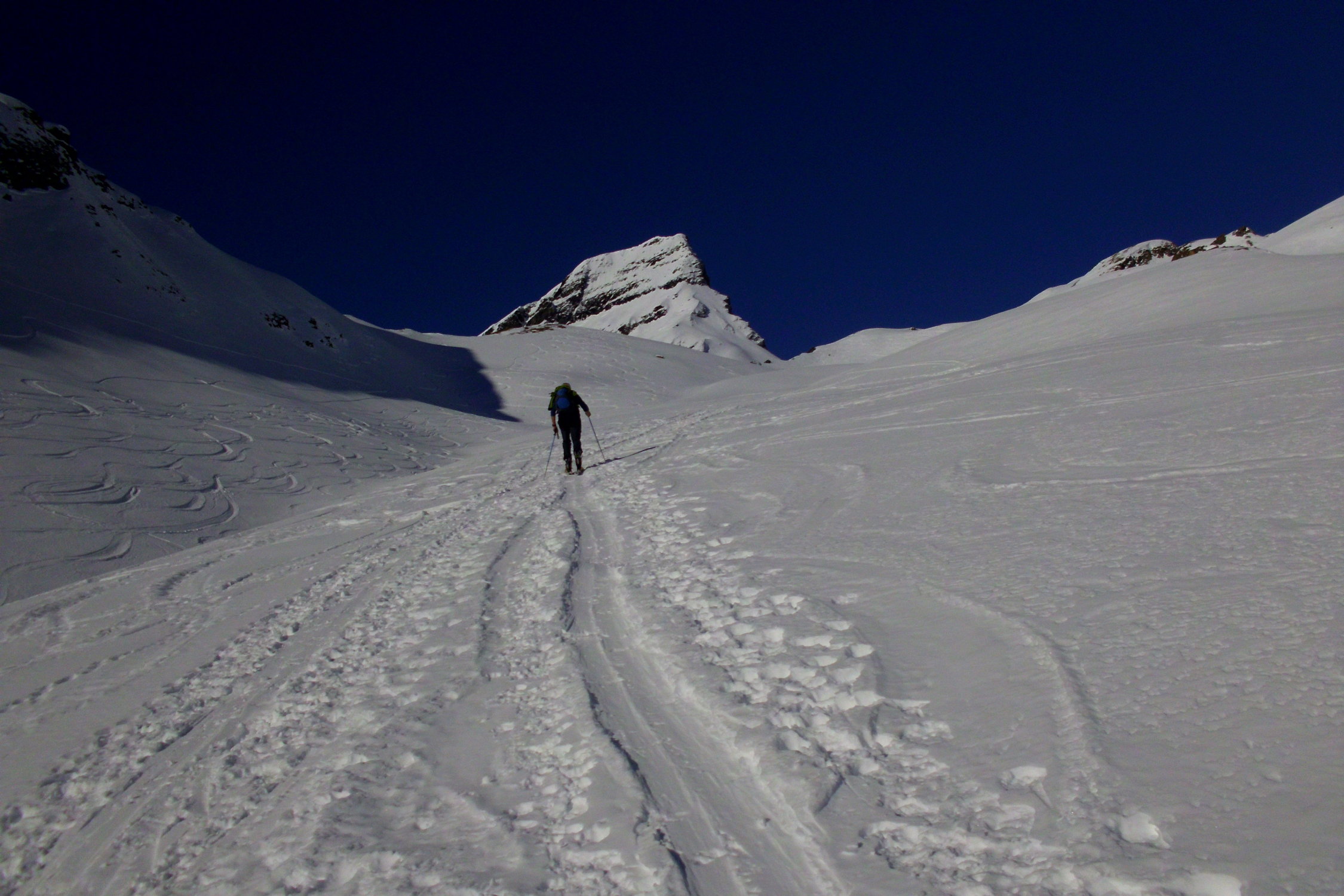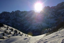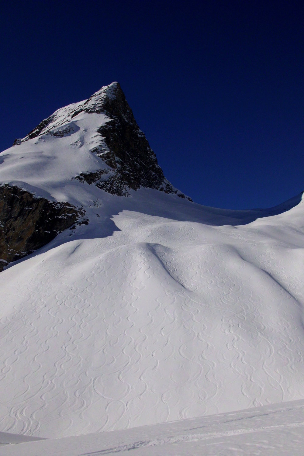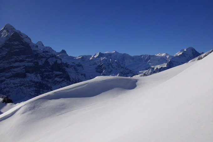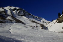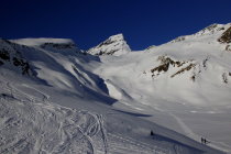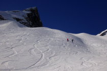 bei der Abfahrt der Aufstiegsroute entlang hat es noch einige schöne Pulverschneehänge...zur Zeit evtl. lohnender als Wischbääch...